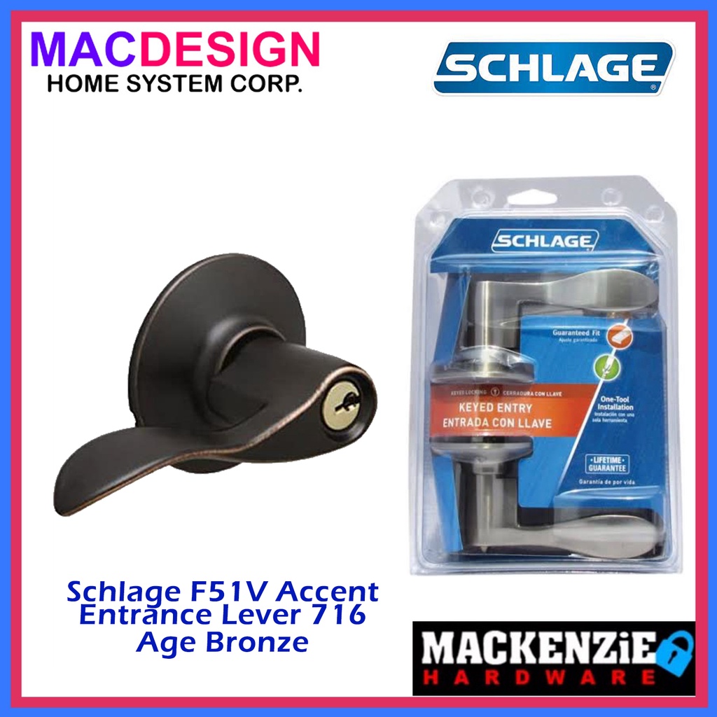 Schlage F51V Accent Entrance Lever 716 Age Bronze With Key