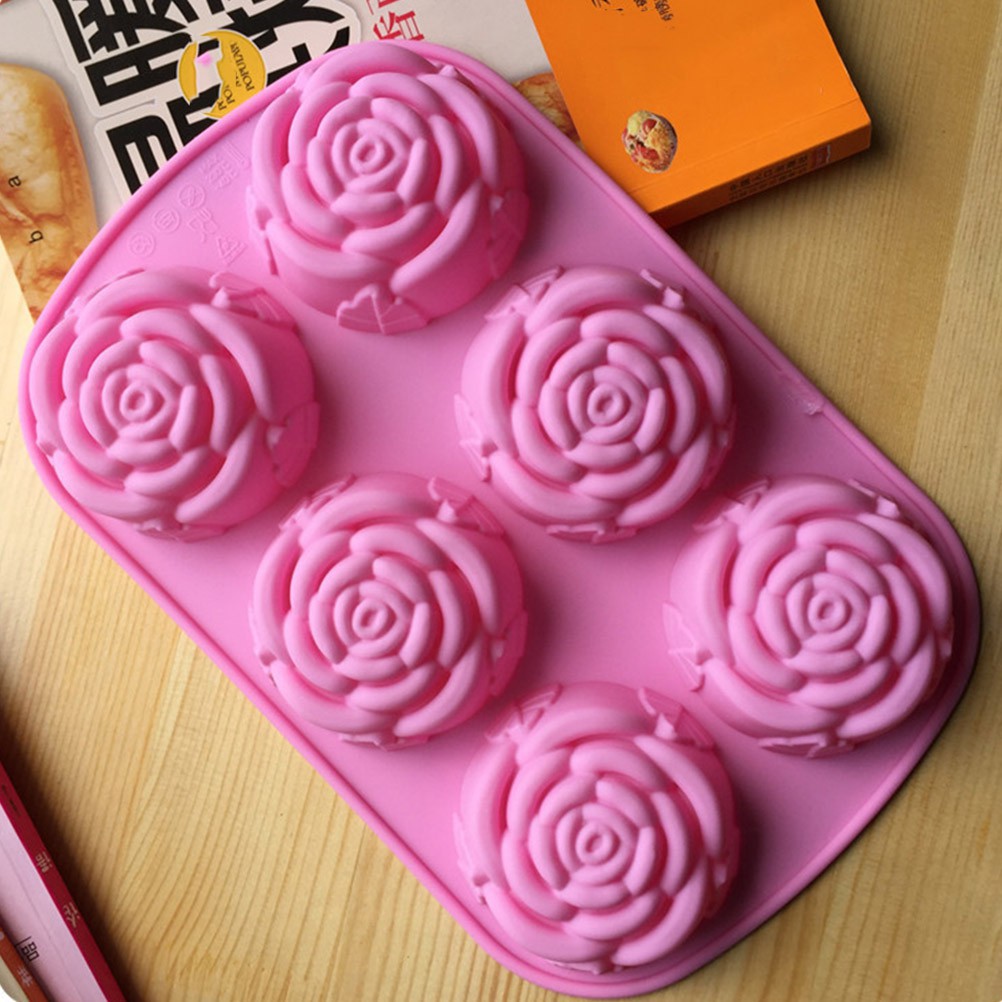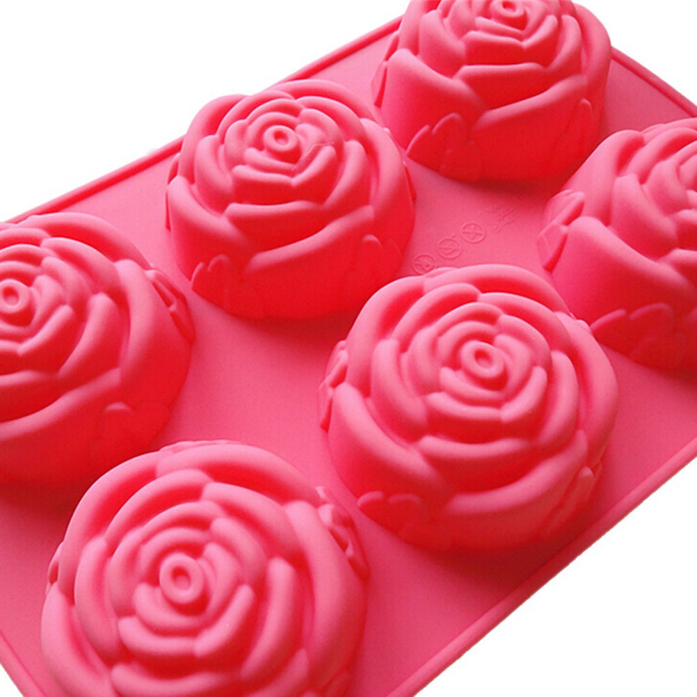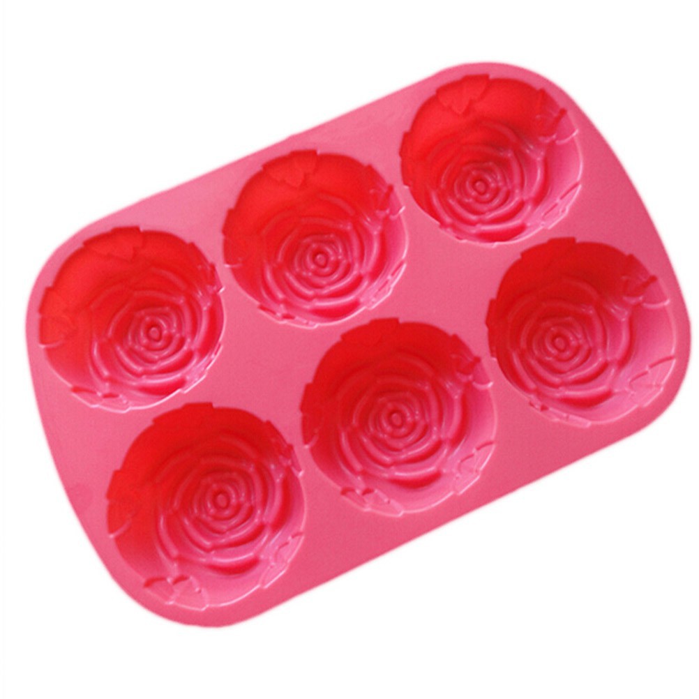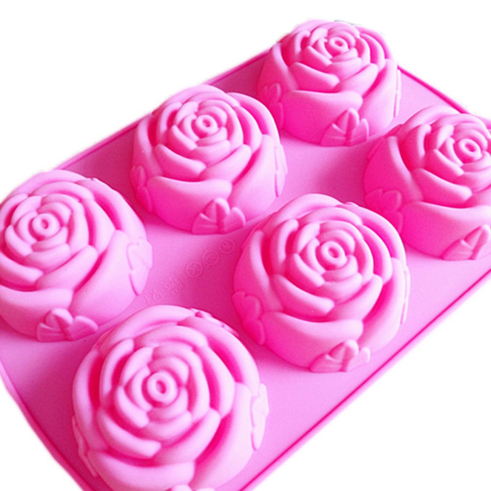 New Silicon Rose Candles Soap Molds Cake Chocolate Candy Jelly Mould 6 Cavities