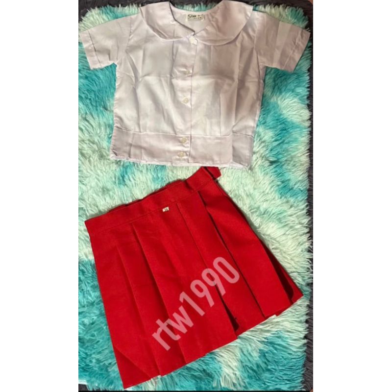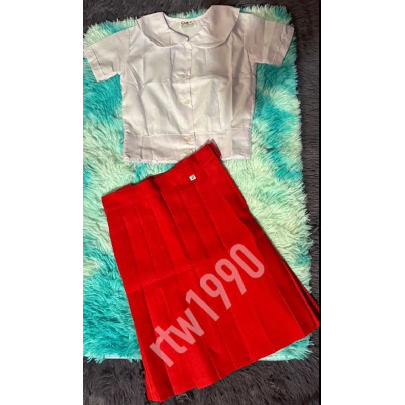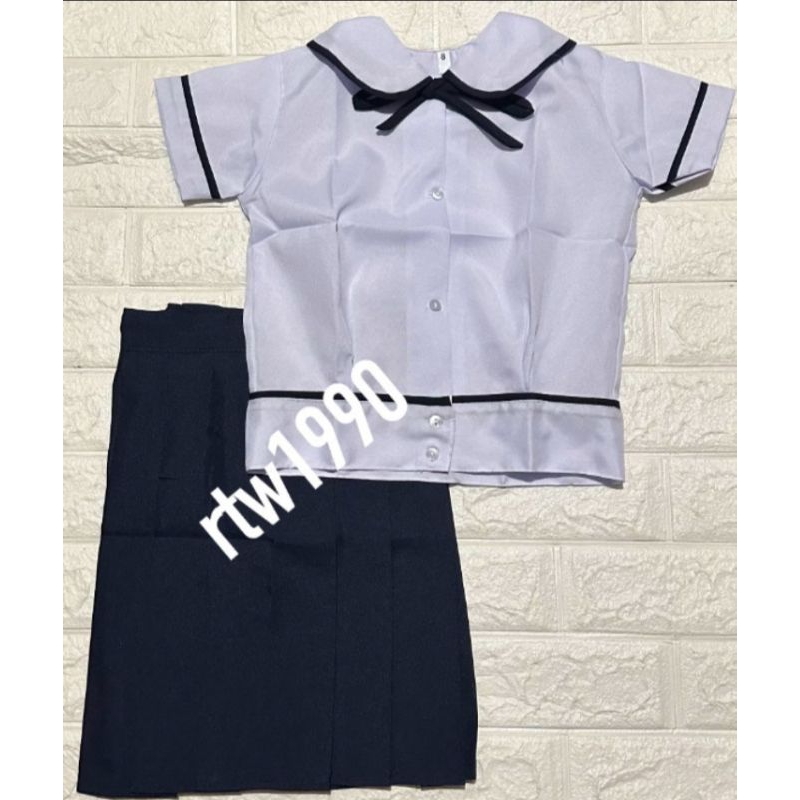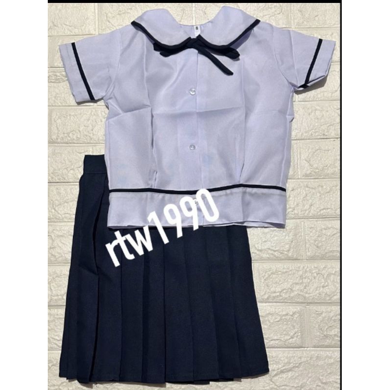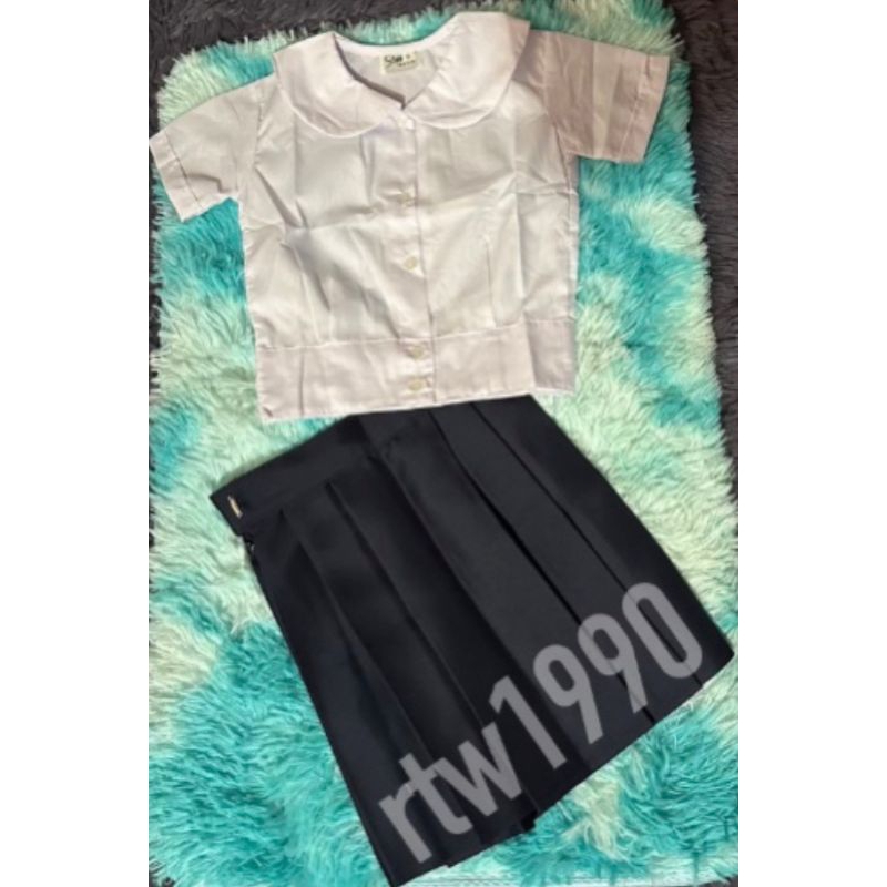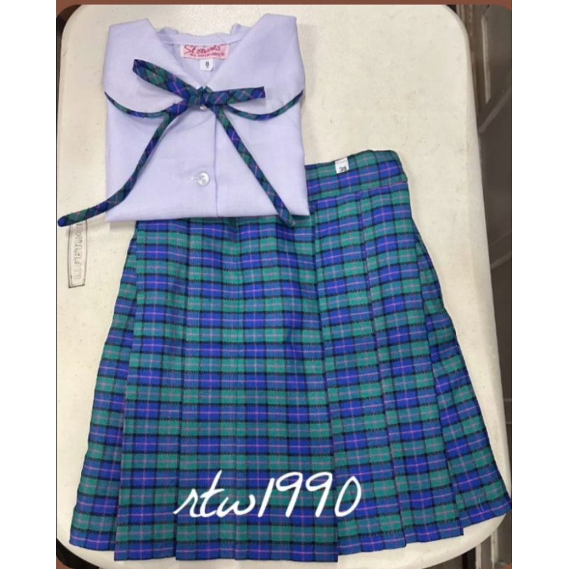 Good Quality school uniform set piping Blue checkered blue green And plain terno skirt
