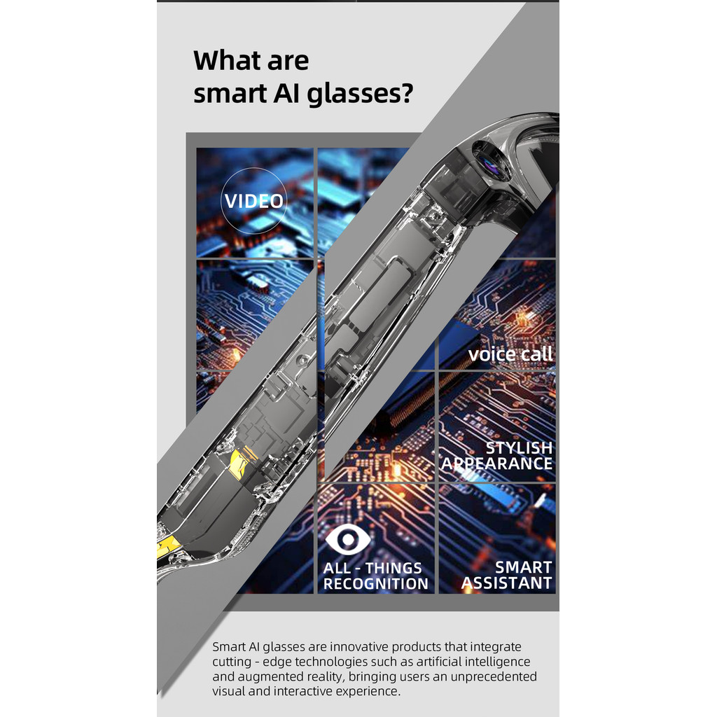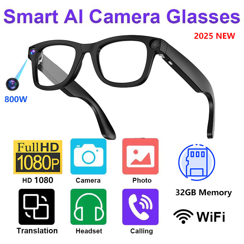 2025 NEW AI Smart Camera Glasses Real-Time Translation Glasses 800W 32GB DVR Camera 1080P HD Shooting Wireless Voice Call Headset AI Recognition Voice Assistant Driving