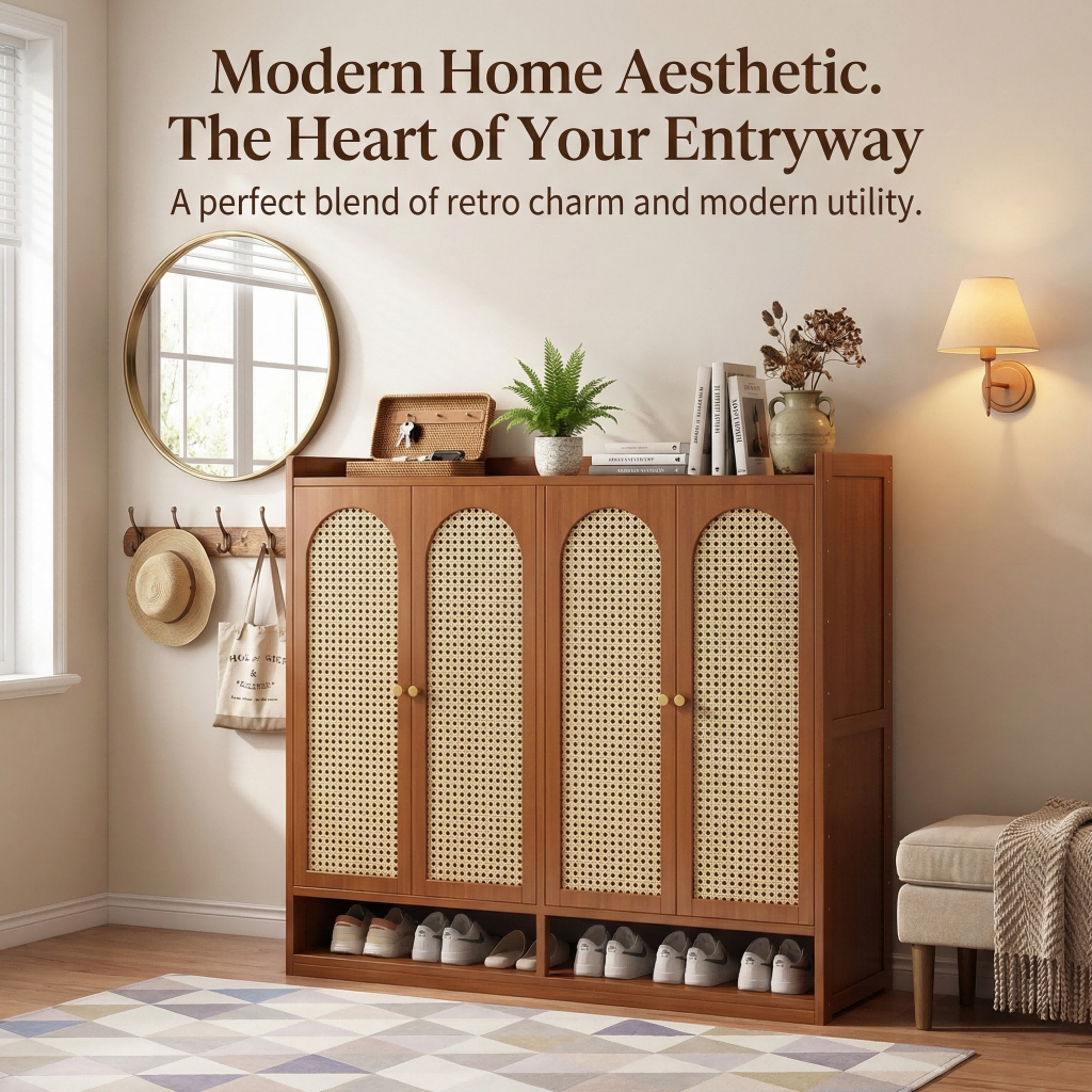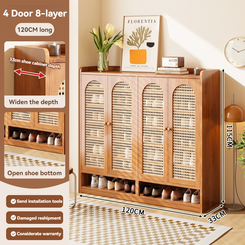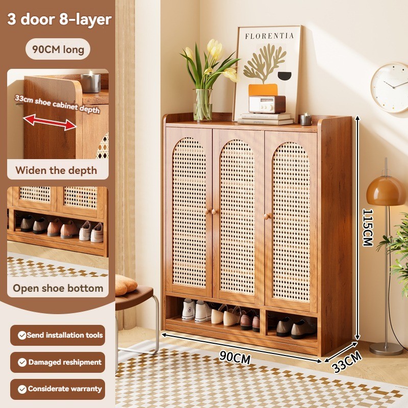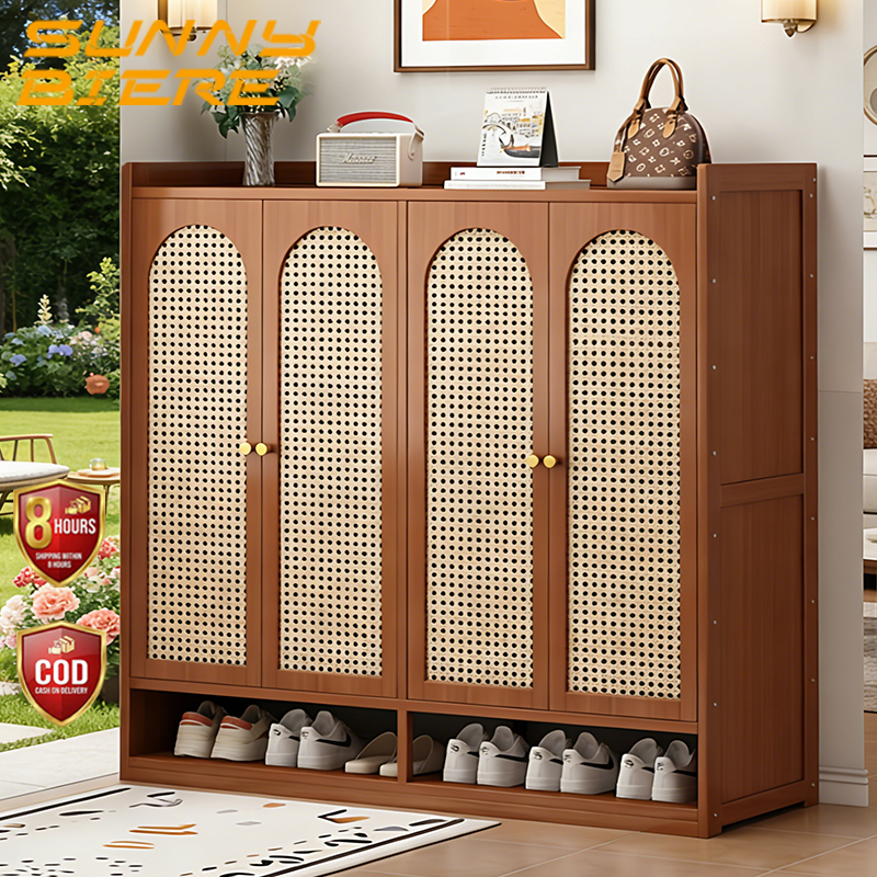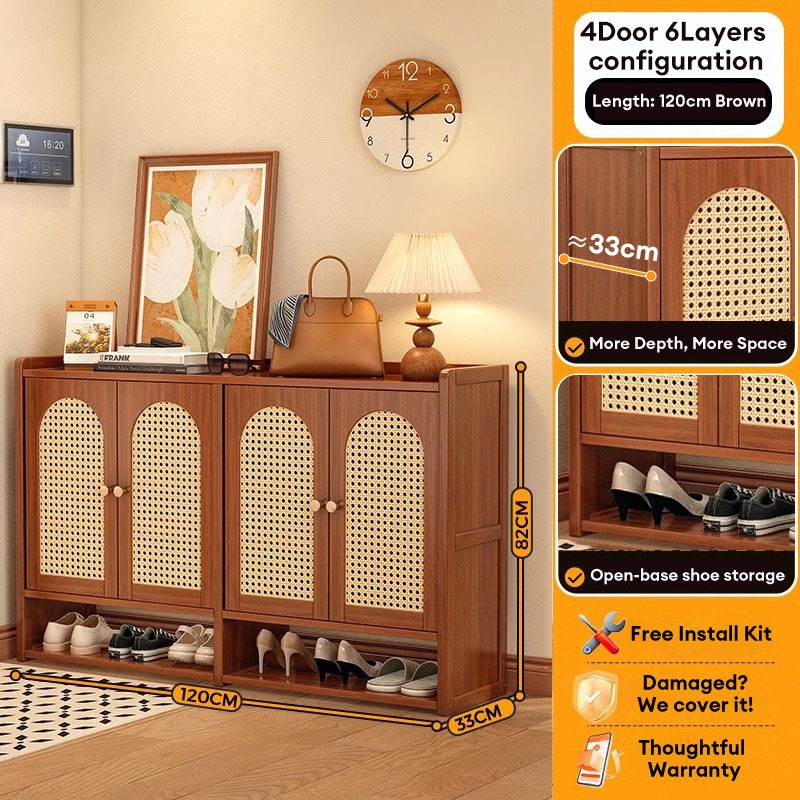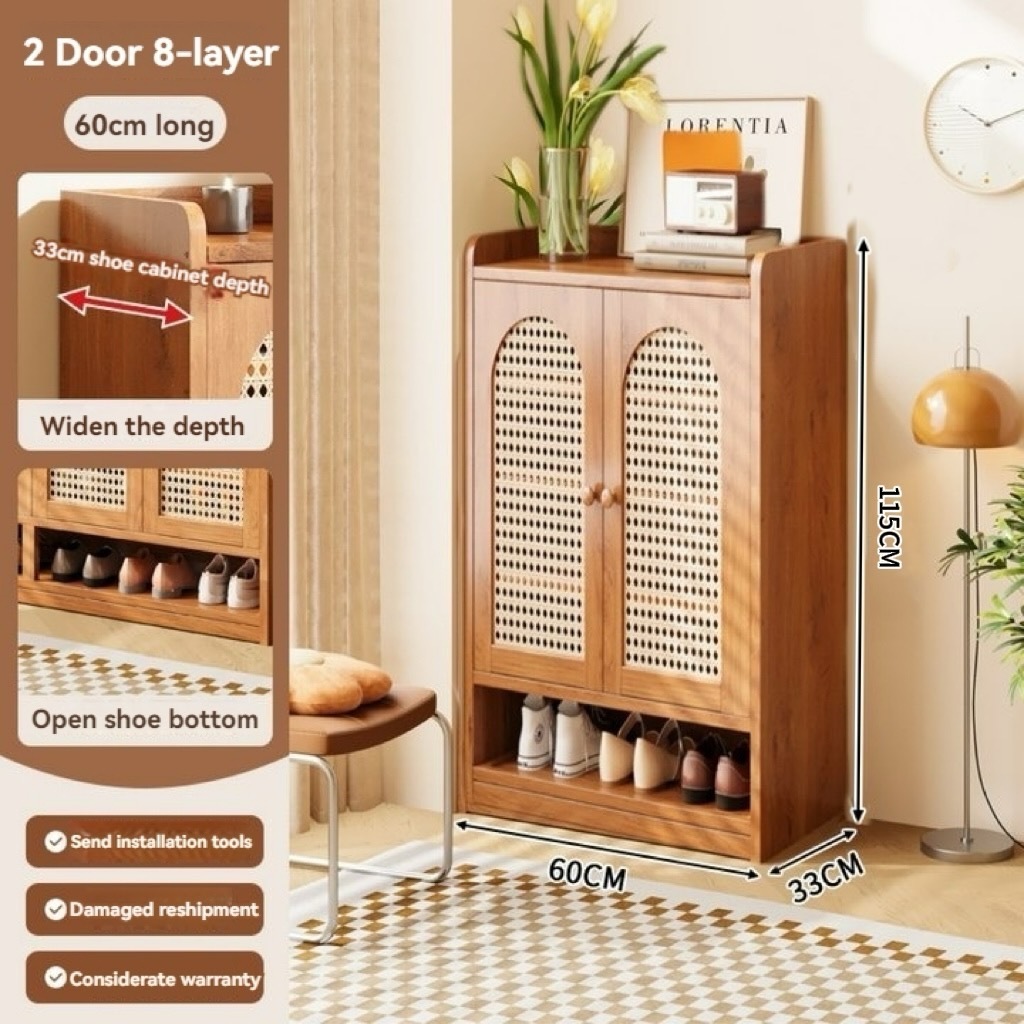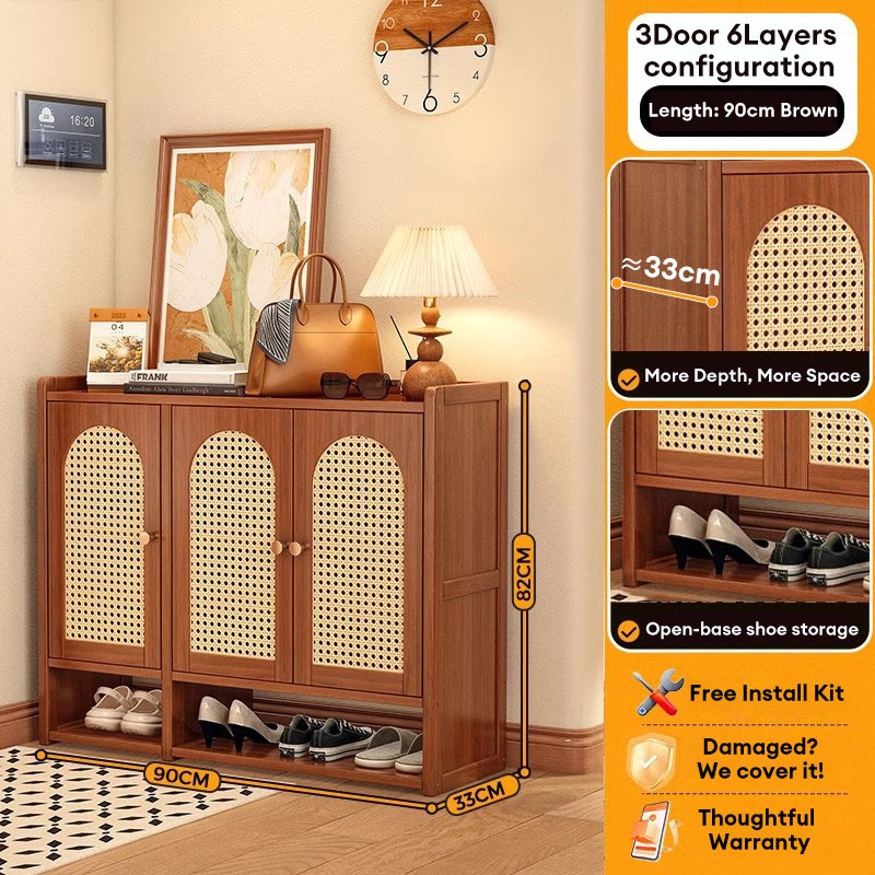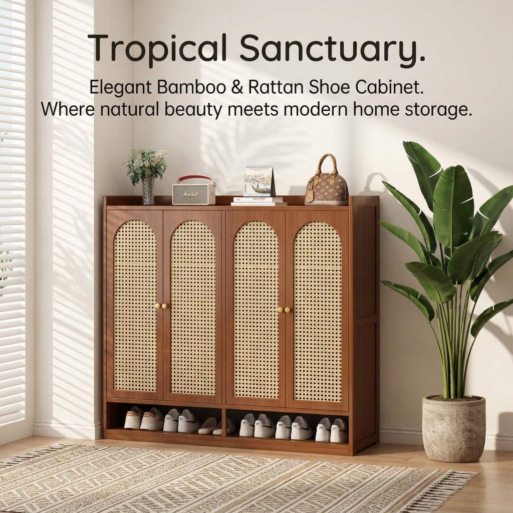【ELEGANT】 Luxury Arched Bamboo Shoe Cabinet Rattan Webbing Design Organizer Japandi Style Home