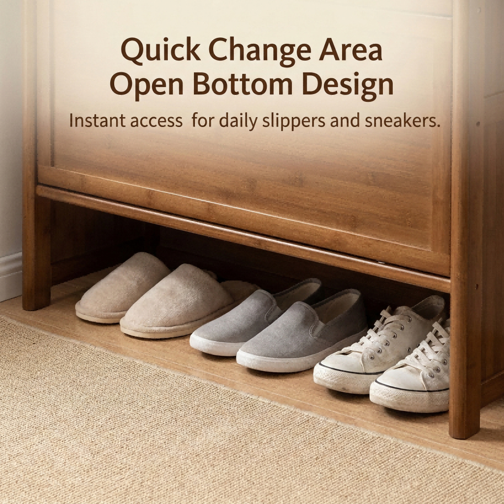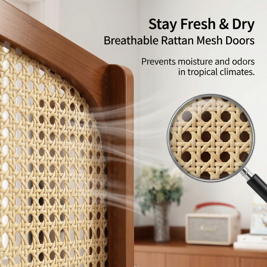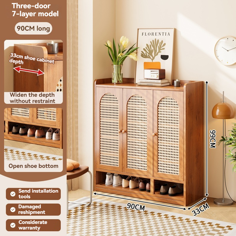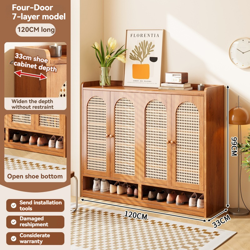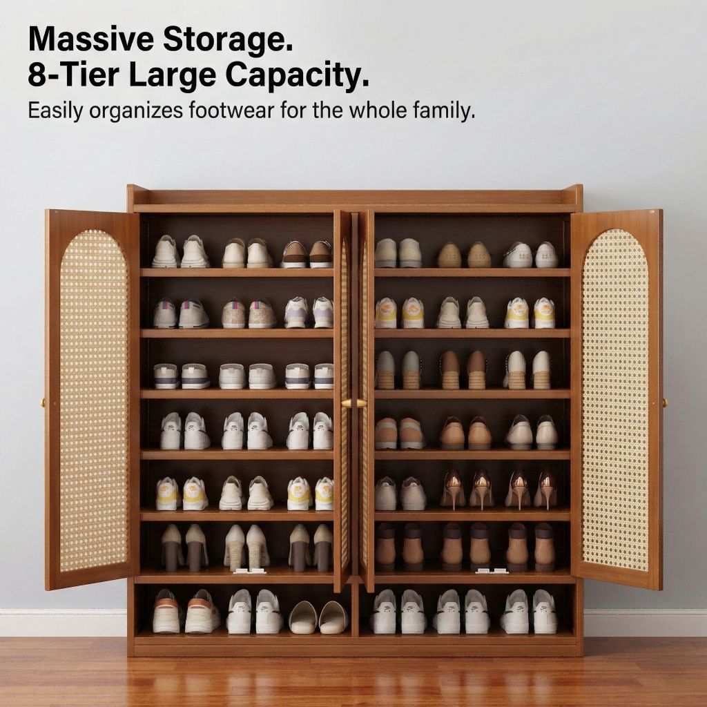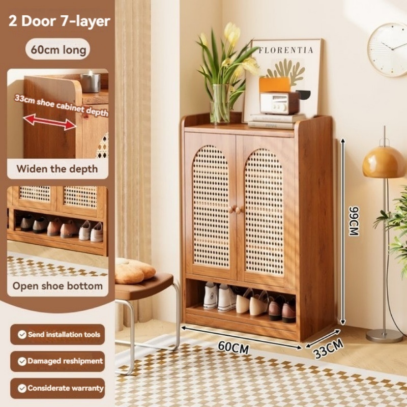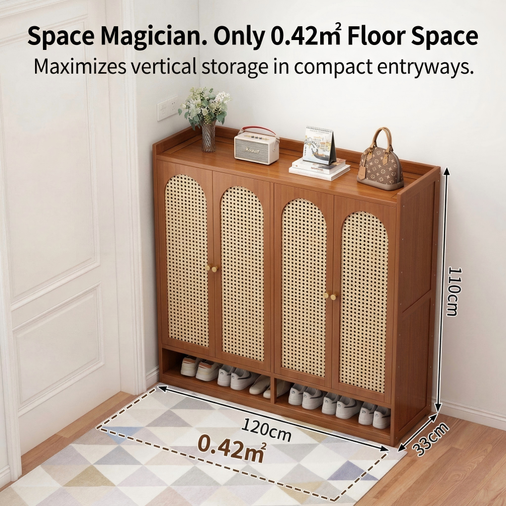 【ELEGANT】 Luxury Arched Bamboo Shoe Cabinet Rattan Webbing Design Organizer Japandi Style Home