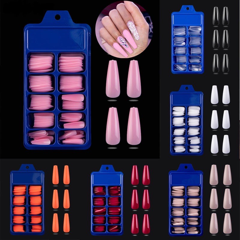 [FREE Glue]100Pcs/set Acrylic Candy Color Full Cover Ballerina False Nail Tip for False Fake Nails