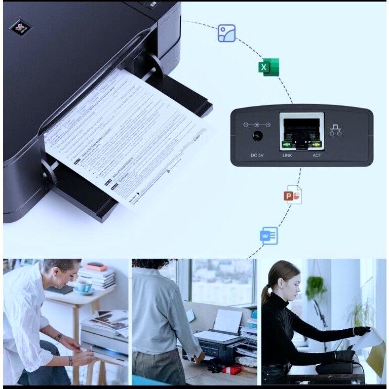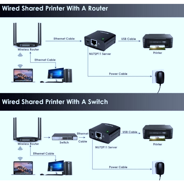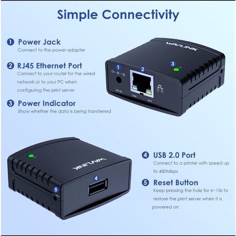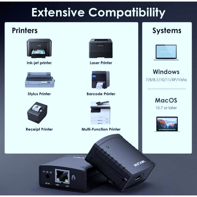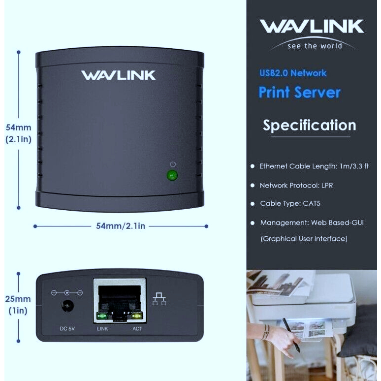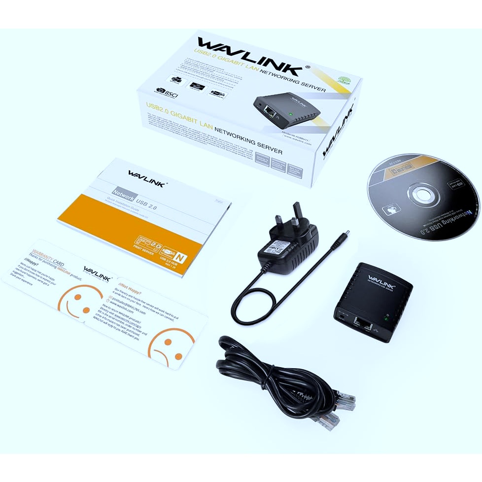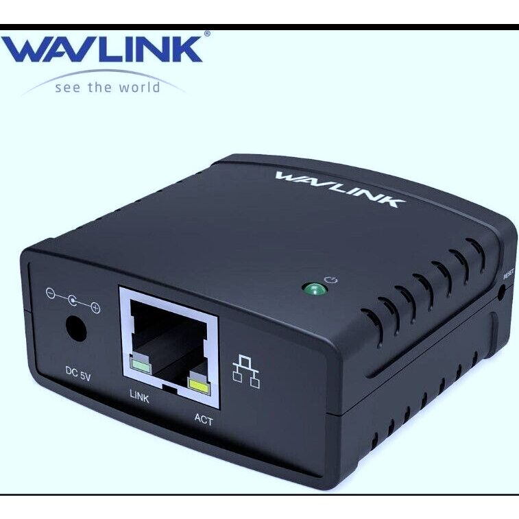 WAVLINK Print Server, 10 / 100Mbps Ethernet to USB 2.0 Network LPR Print Server for Windows