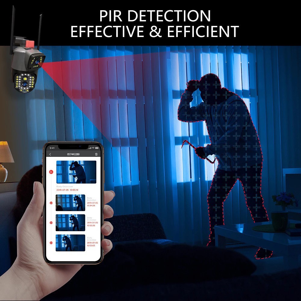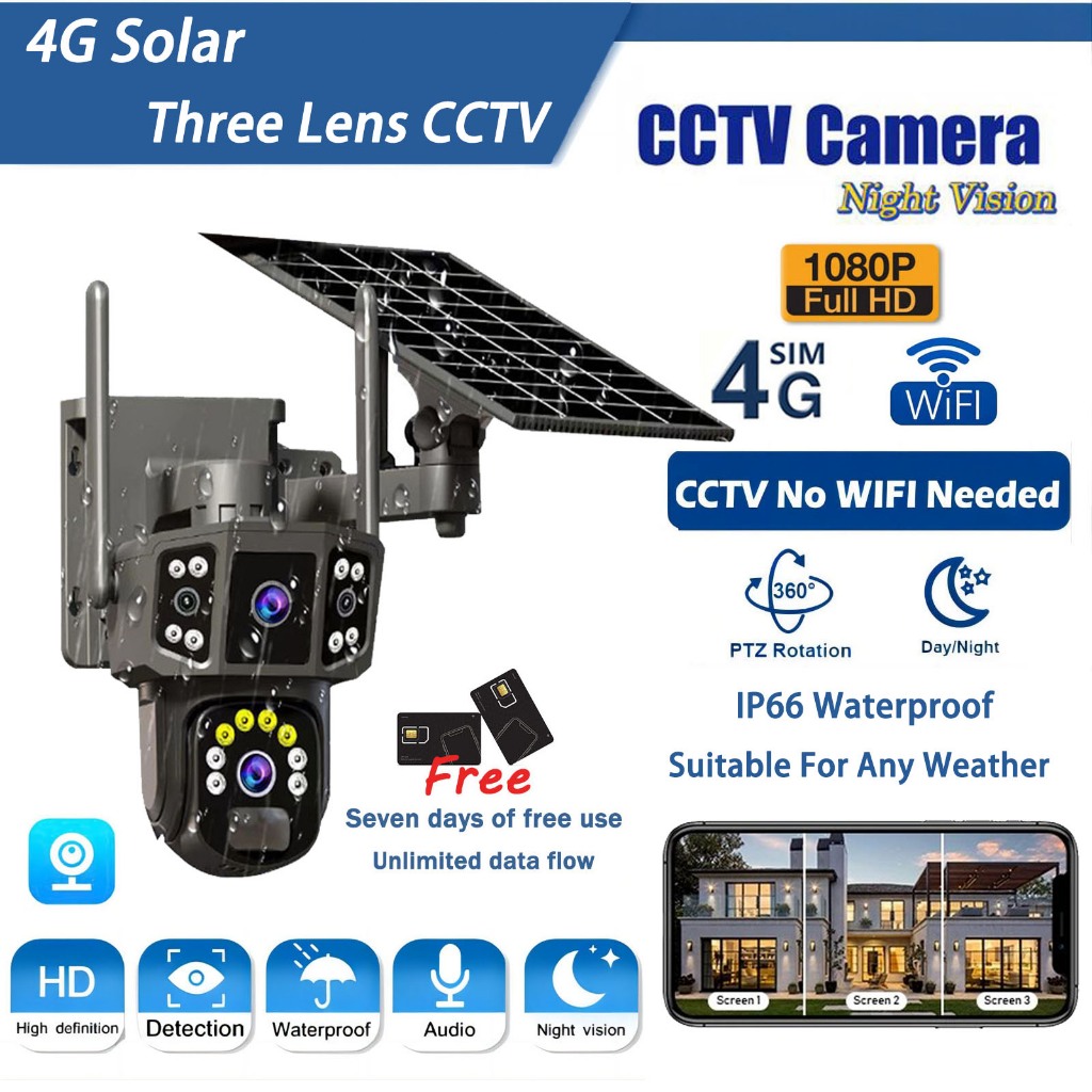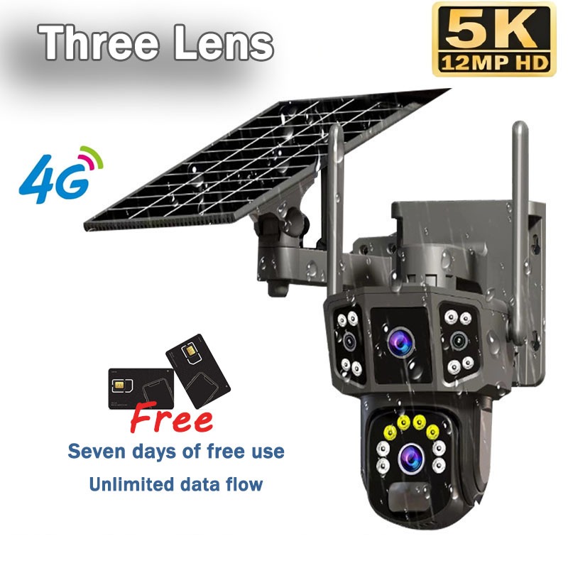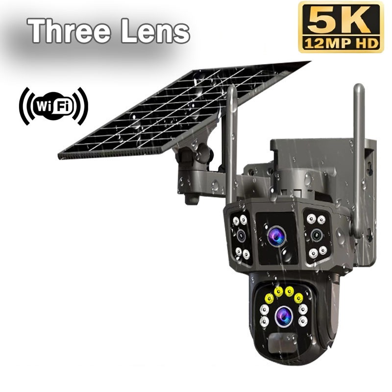 Three Lens Solar CCTV Camerea V380 Pro Outdoor Waterproof PTZ Wireless Wifi Night Vision