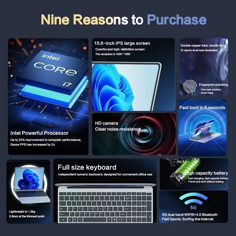 2026 Laptop Intel I7 Gamebook 15.6-inch 16GB+1TB SSD Work Gaming Notebook Win11Pro Package
