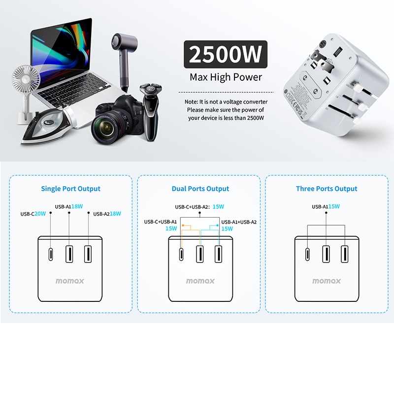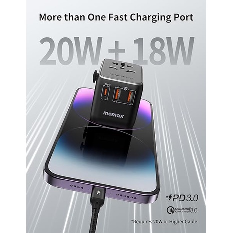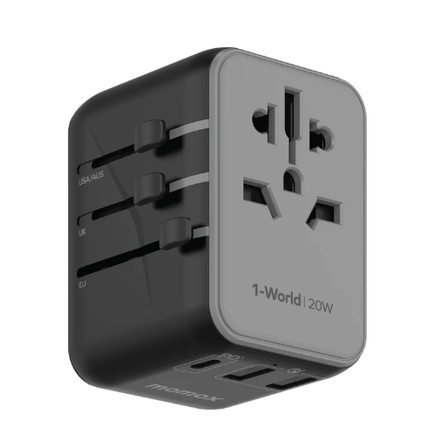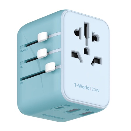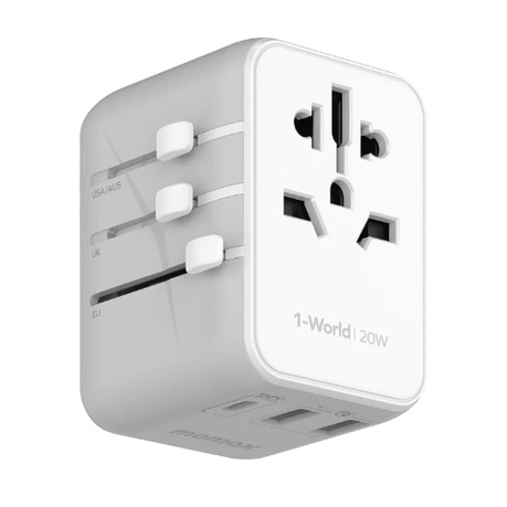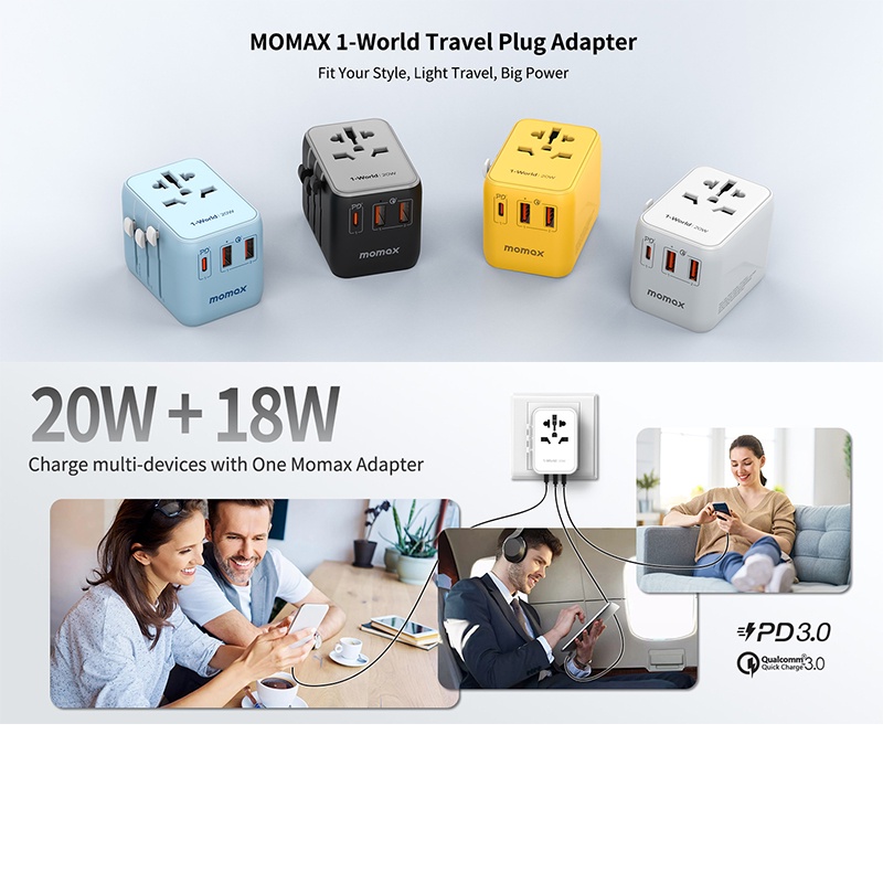 MOMAX 20W Universal Mini Travel Adapter Travel Outlet Adapter With US/EU/UK/AU QC International Adapter Charger Converter For Laptops Tablets Mobile Phones