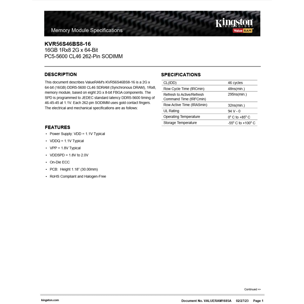 KVR56S46BS8-16GB