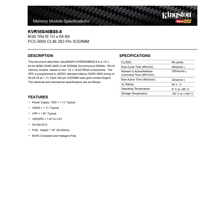 KVR56S46BS6-8GB