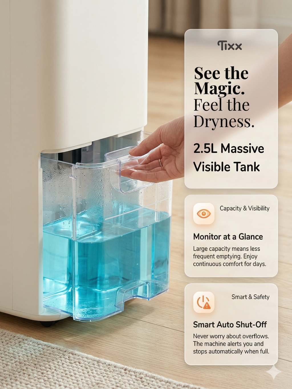Tixx Dehumidifier Air Purifier For Home 2.5L Water Tank 45db Low Noise Moisture Absorber Indoor