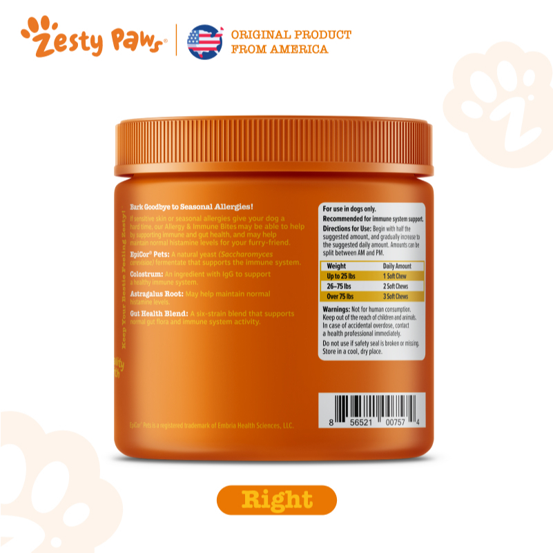 Zesty Paws Allergy & Immune Bites Dogs Immune - Peanut Butter Flavor (90 Soft Chews) (EXP:11 2026)