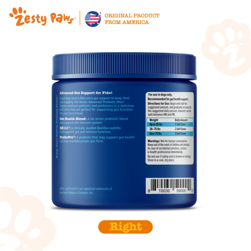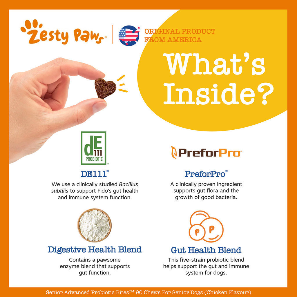Zesty Paws Senior Probiotic Bites Dog Gut Health - Chicken Flavor (90 Soft Chews) (EXP:08 2026)