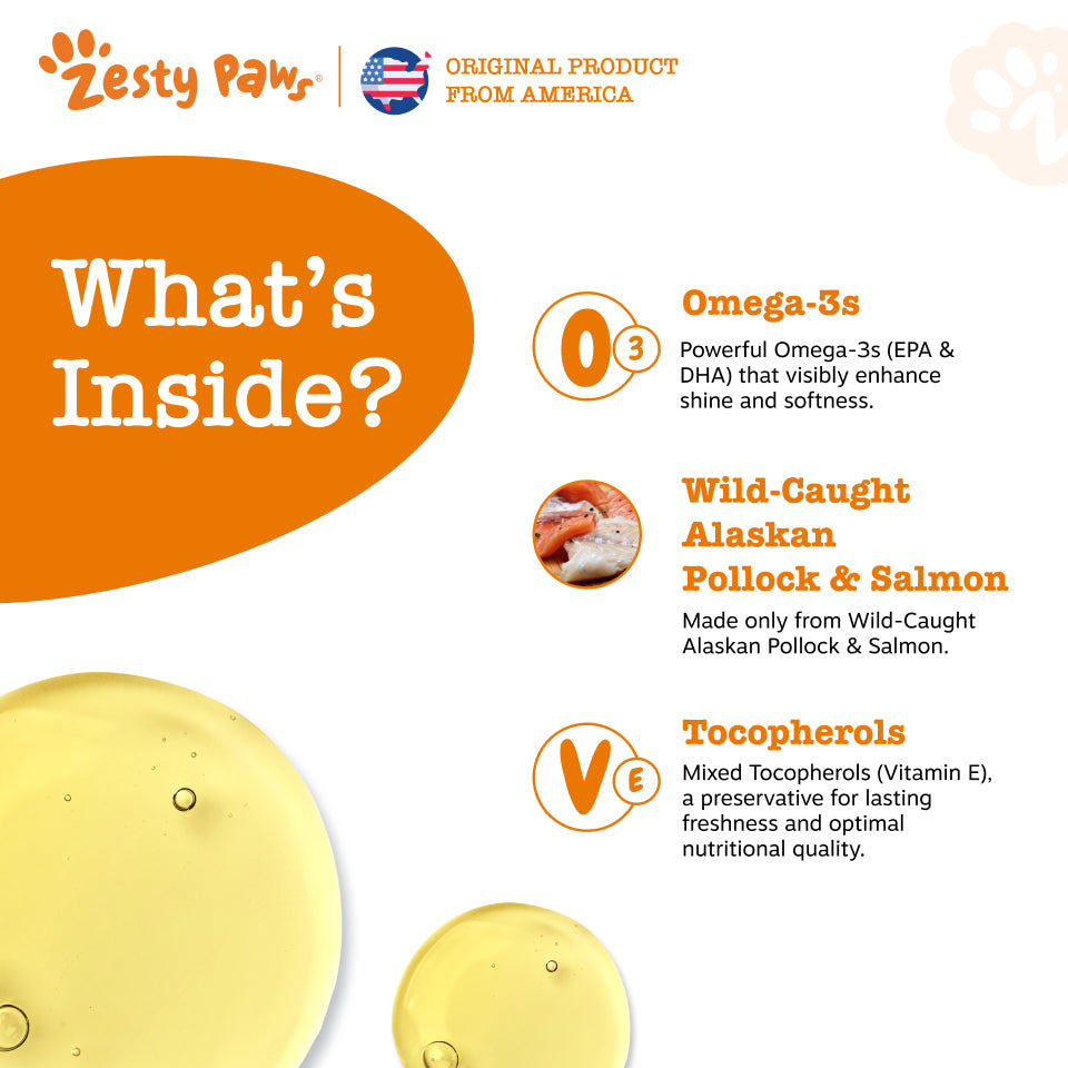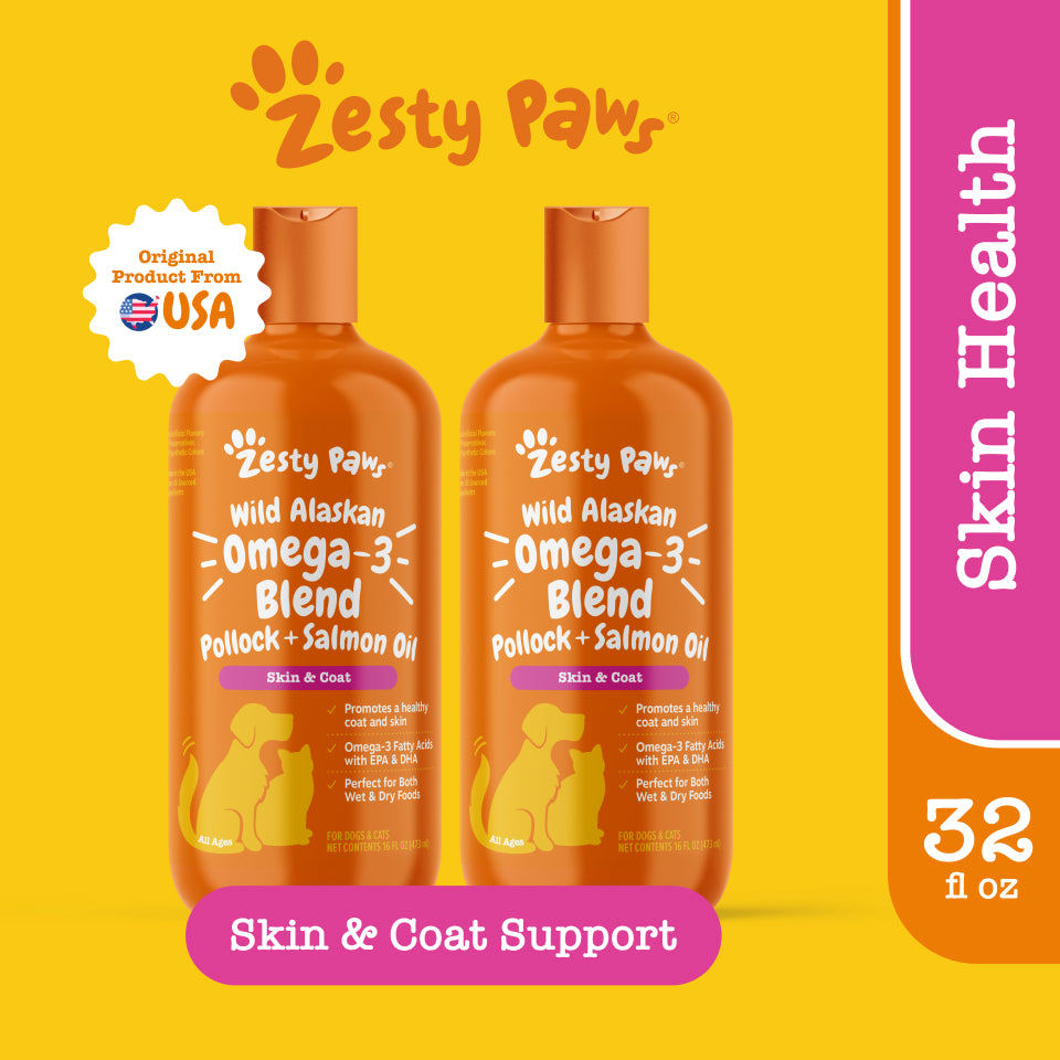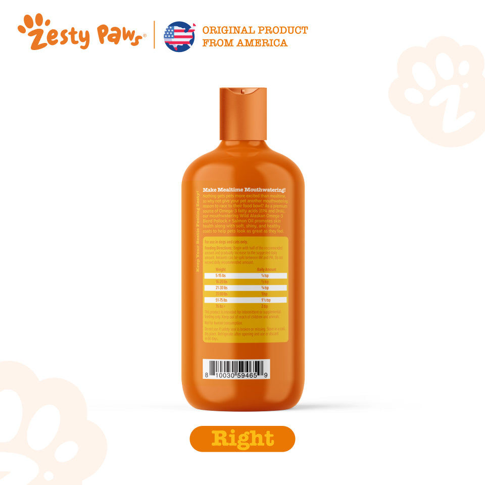 Zesty Paws Pure Wild Alaskan Salmon Oil Omega-3 EPA & DHA Cats Dogs (16oz / 473ml)(EXP:07 2027)