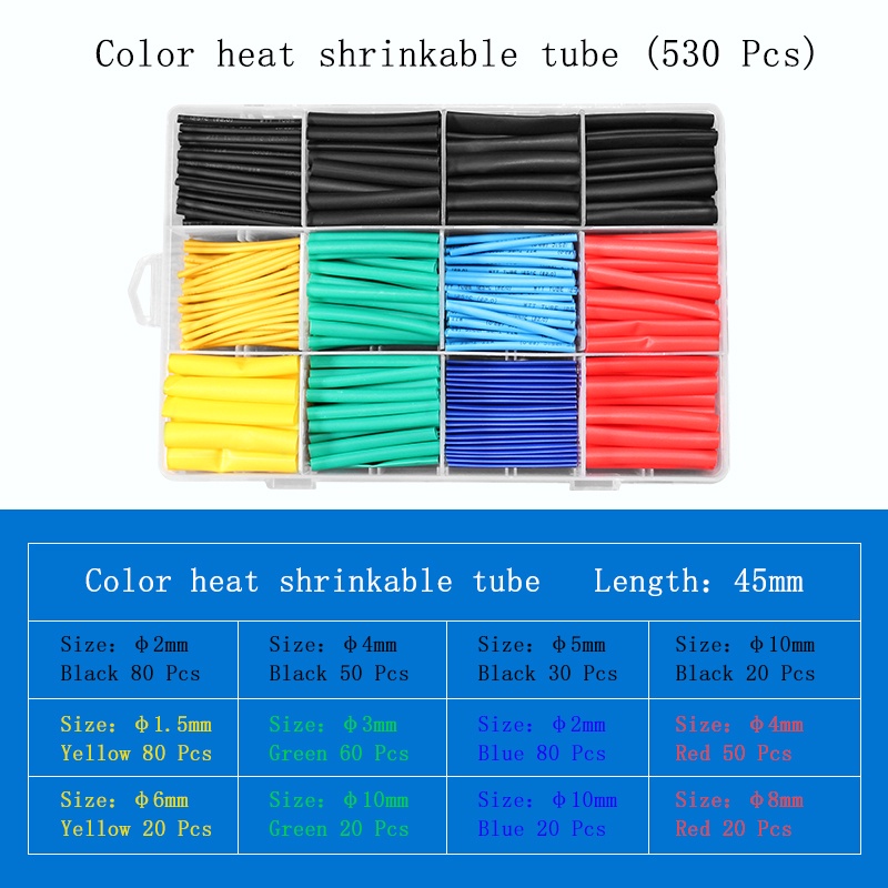 530Pcs Heat Shrink Tubing Pipe Insulation Shrinkable Tube Heat Sink Tube Wire Wrap Heat Cable Sleeve