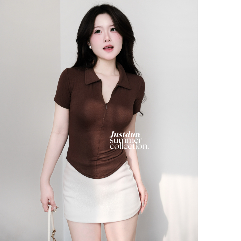 JUSTDUN K42 smooth cotton zip-collar body-hugging t-shirt