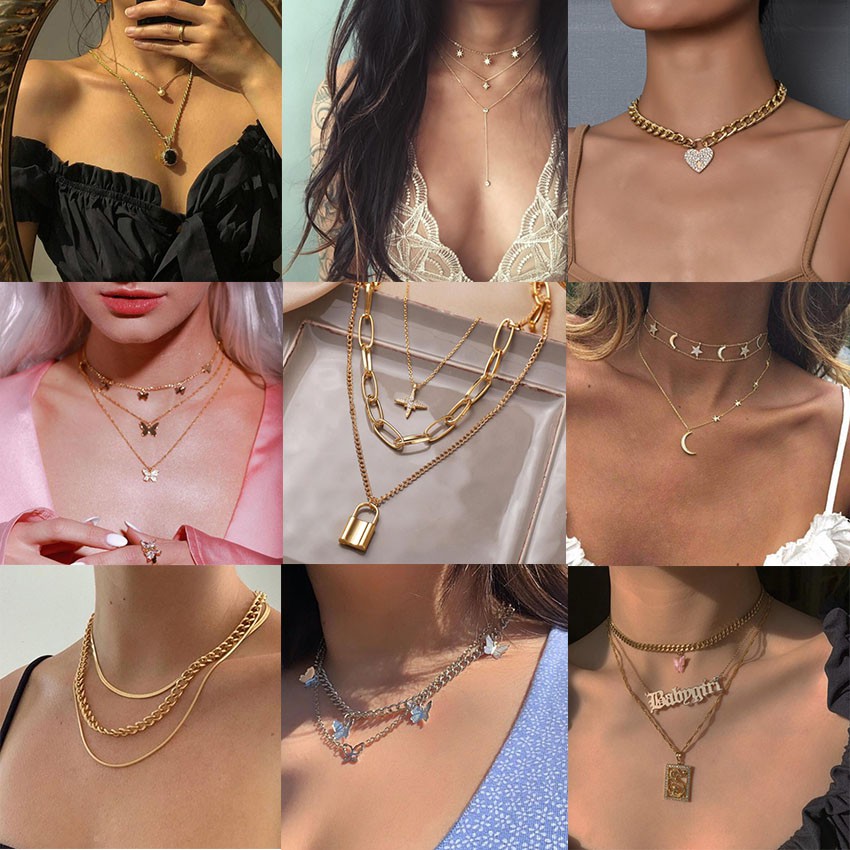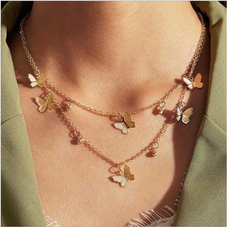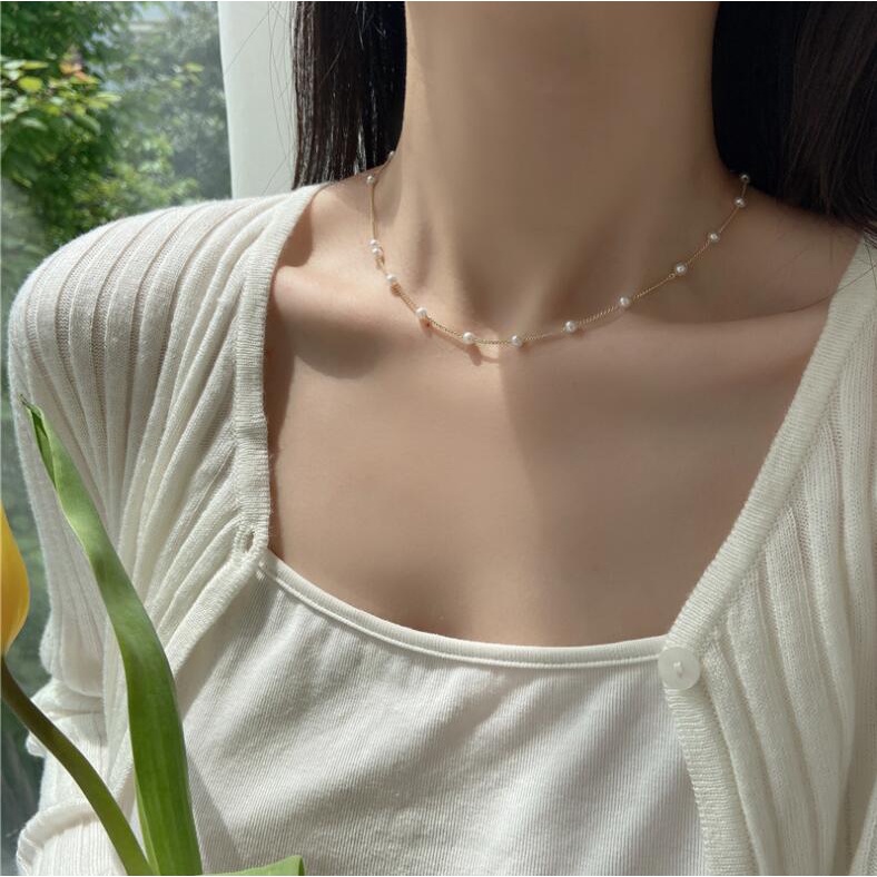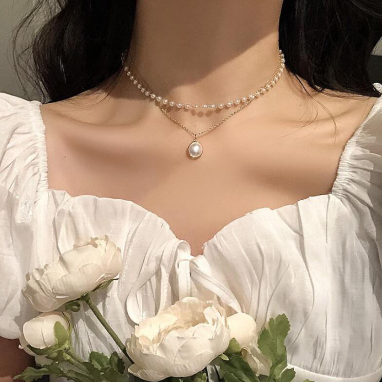 ins simple double pearl necklace clavicle chain short necklace