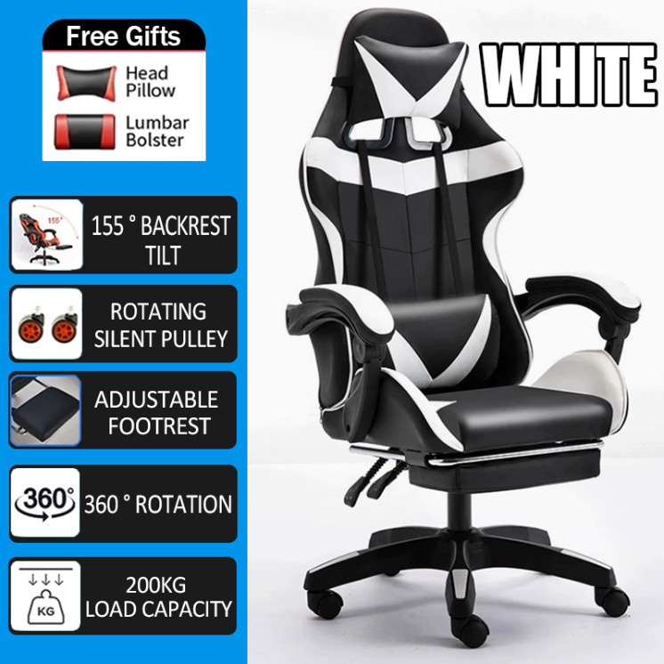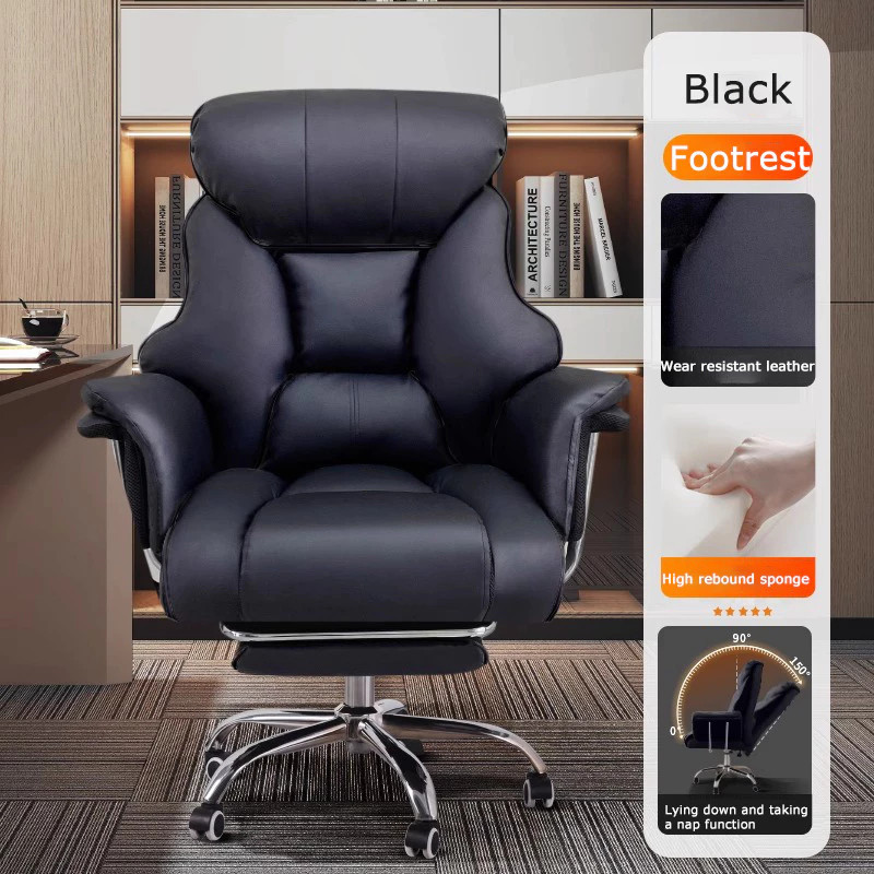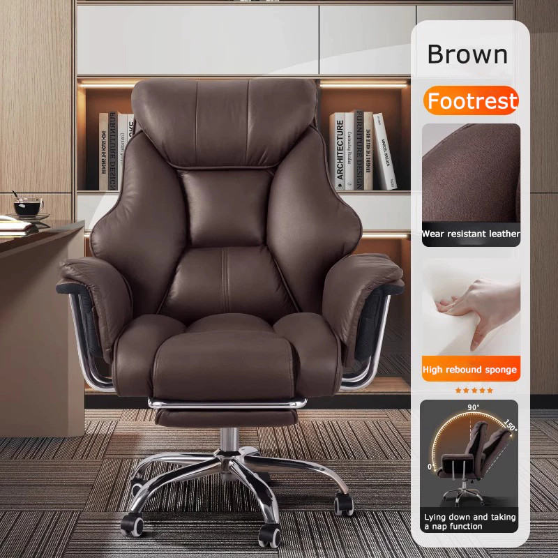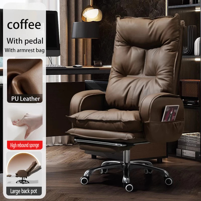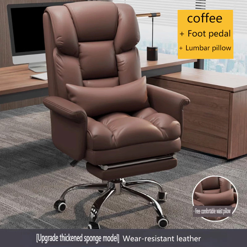 Office Chair Leather Reclining Swivel Chair Comfortable Ergonomic Chair With Foot Rest Gaming Chair