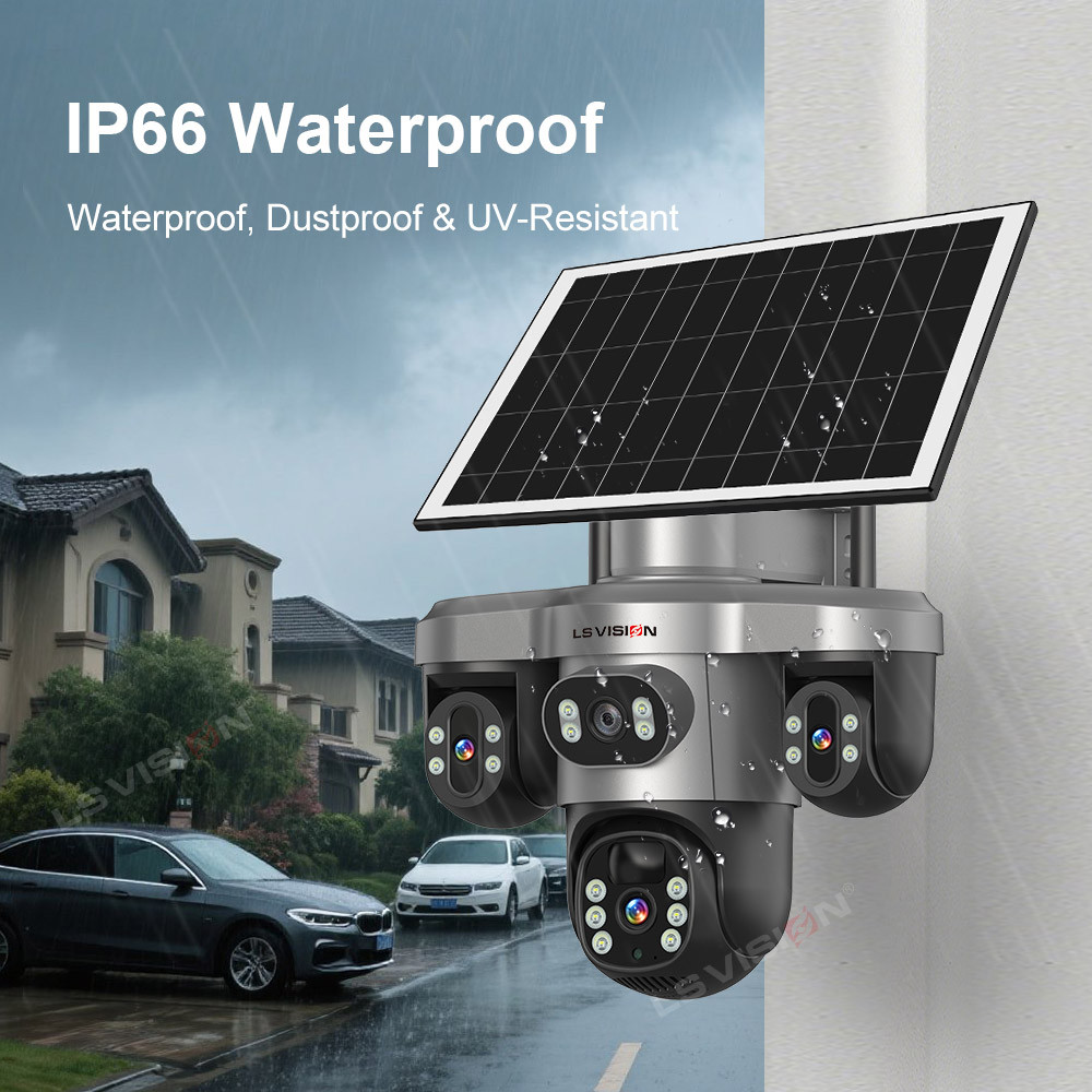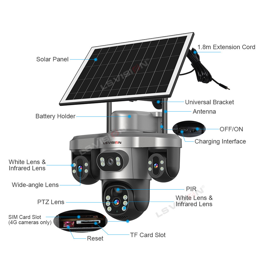 LS VISION V380 Pro 4G/WiFi Solar Camera 15MP 3 PTZ 3 Lens 3 Screen CCTV AI Tracking & Solar Power 8000mAh battery