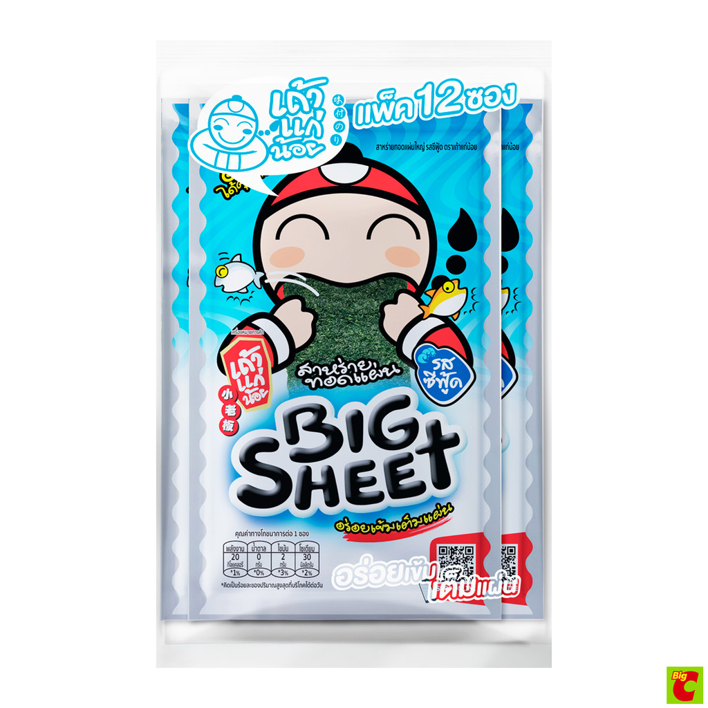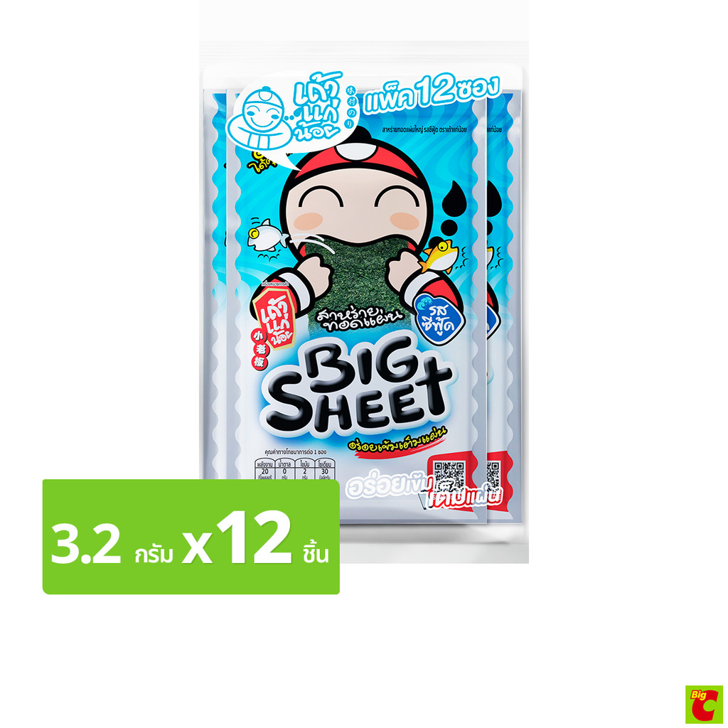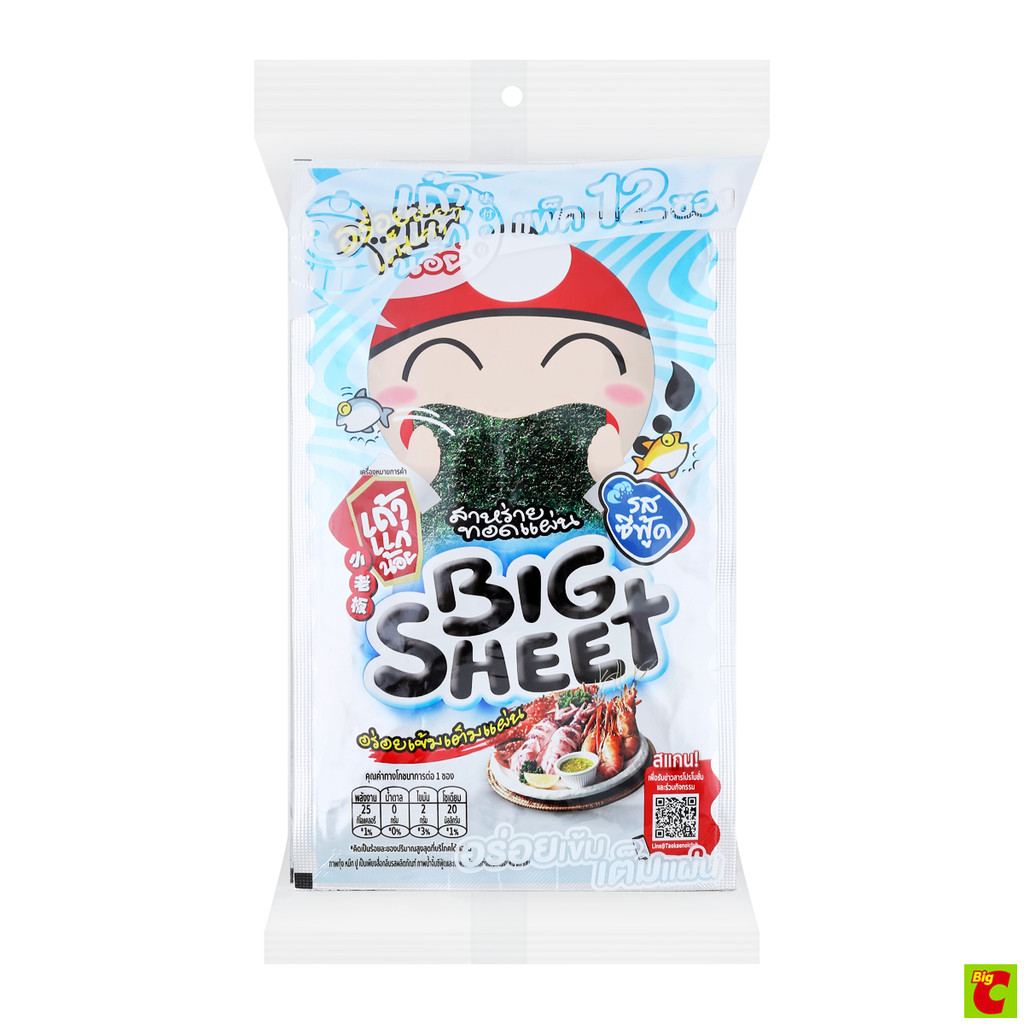 Tao Kae Noi Big Sheet Crispy Fried Seaweed Seafood Flavor 3.2 G. x 12 Pieces Crispy Seaweed