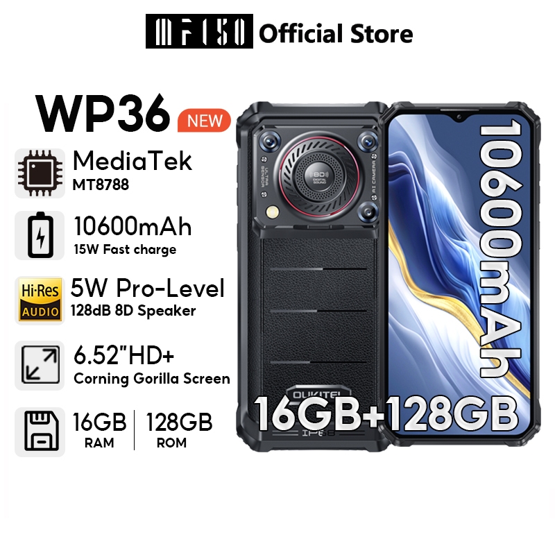 [LOCAL STOCK] OUKITEL WP36 16GB+128 6.52” HD+ Rugged Smartphone 128db Speaker 10600mAh 15W Fast charge 13MP Camera+2MP Macro Camera Android 14 Google play Face ID SOS OTG NFC Hand ph