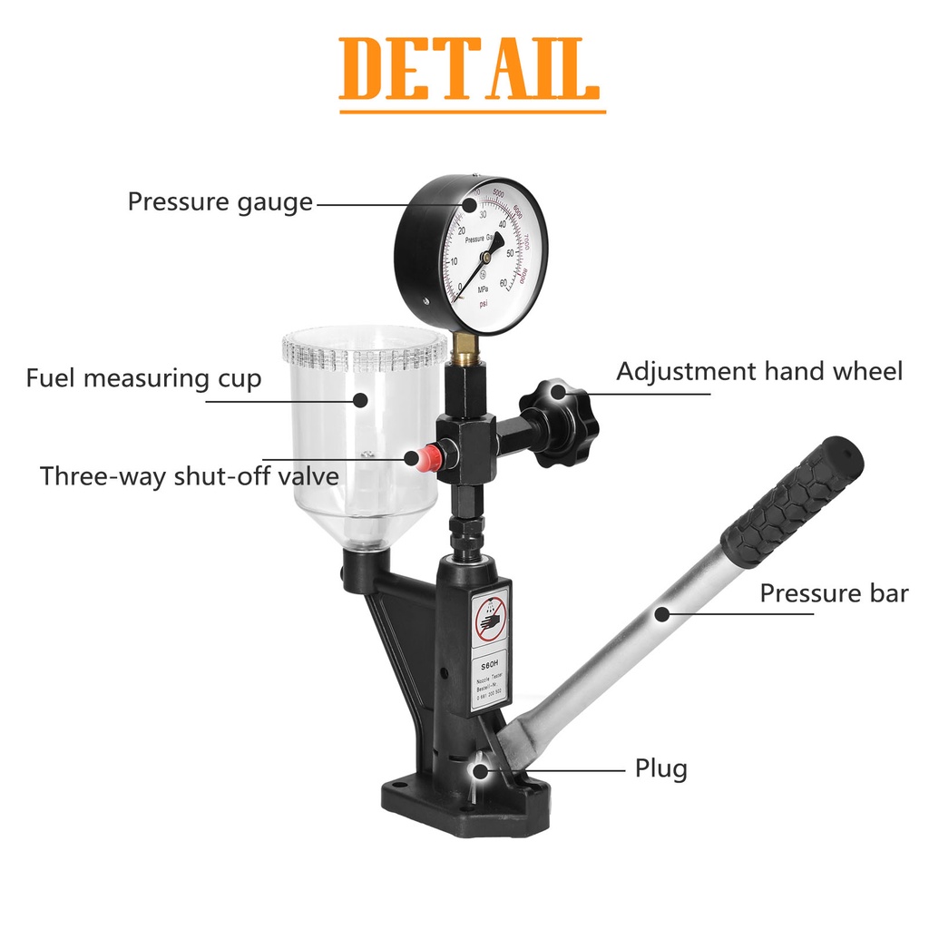 60Mpa Nozzle Pop-Pressure Fuel Injector Calibrator Dual Scale Gauge Tester 0-400BAR Common Rail Tool