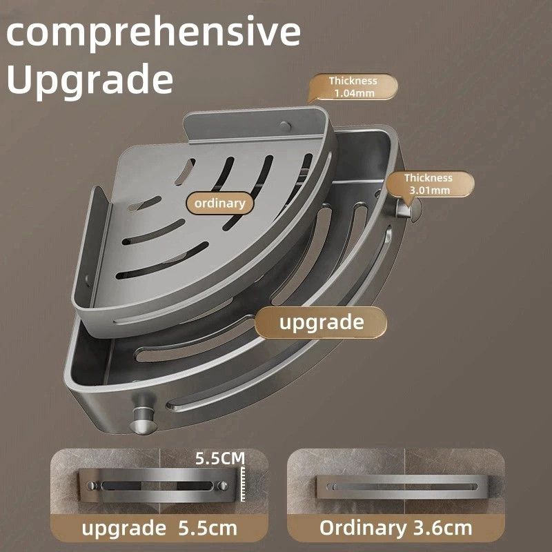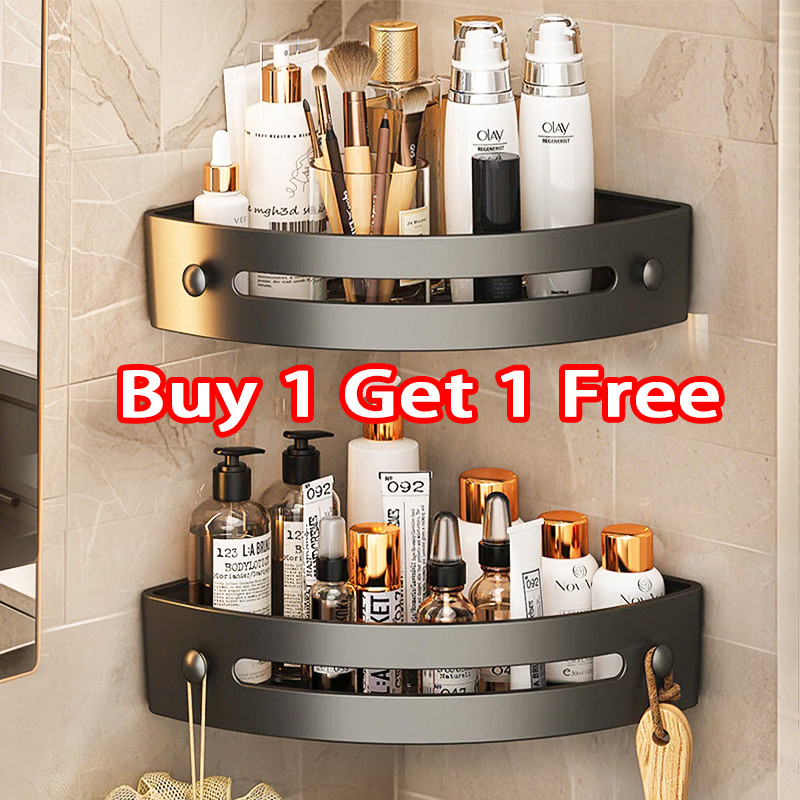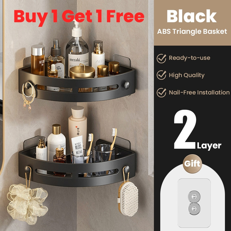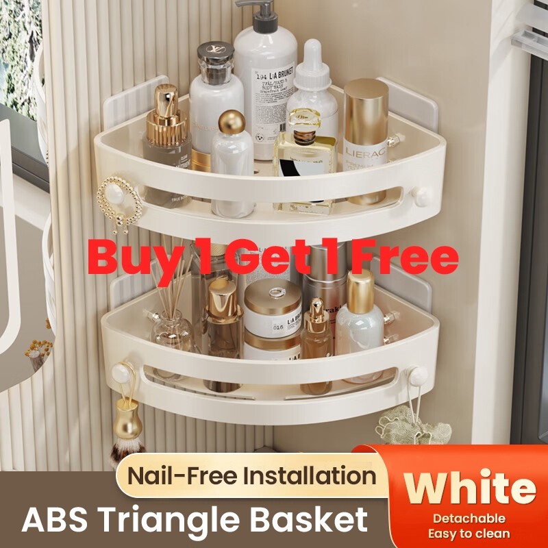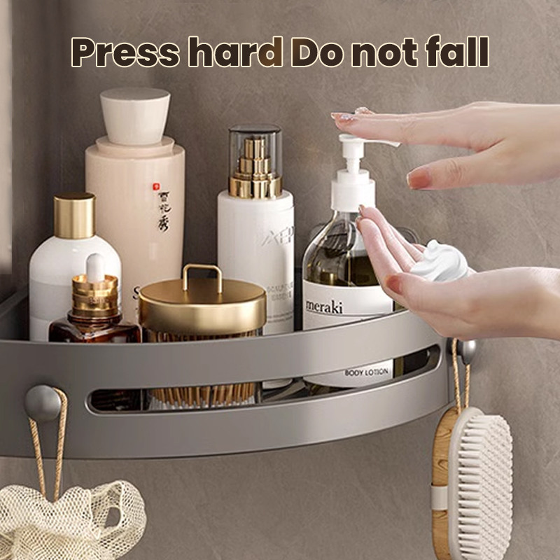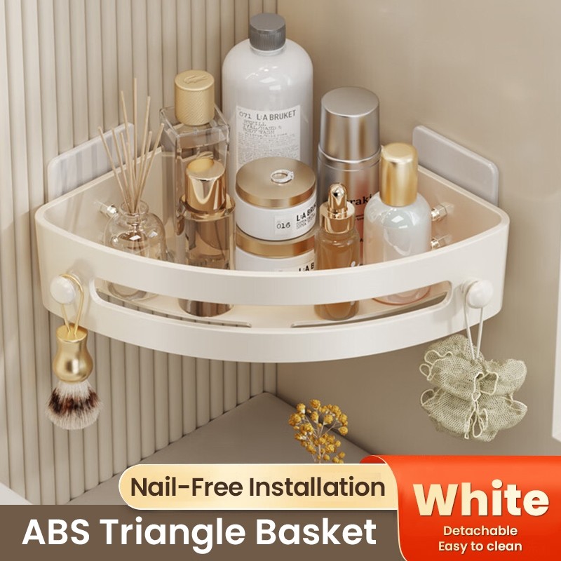Bathroom Corner Shelf Rack Wall Mounted Punch-free Triangle Storage Rack With Hooks Shower Organizer