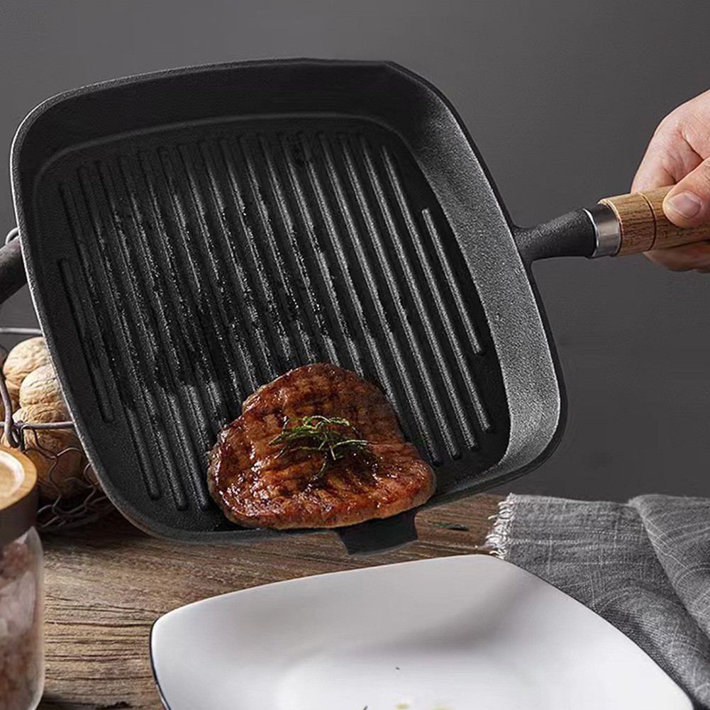 Cast iron steak frying pan flat bottom striped steak pan household uncoated non-stick