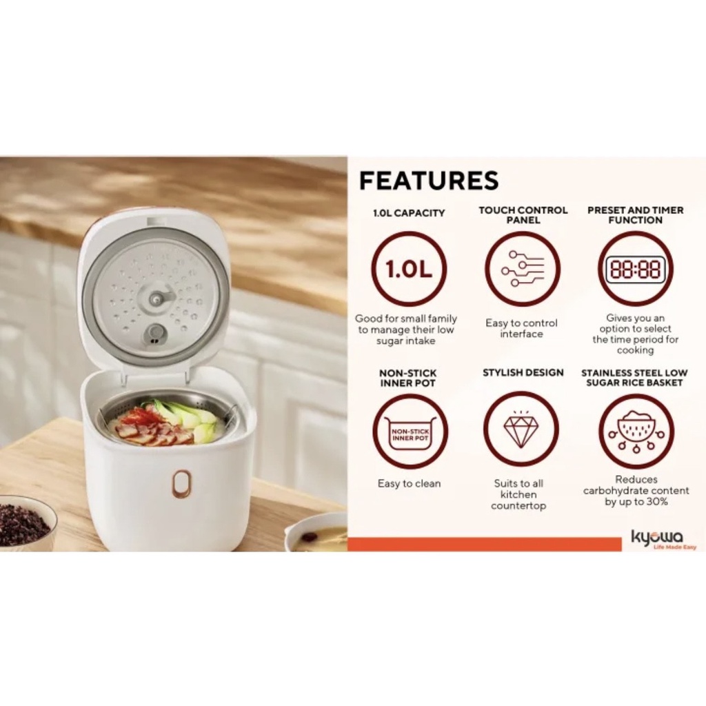 Kyowa Low Sugar Rice Cooker (White) KW-2200 by Smart Appliances