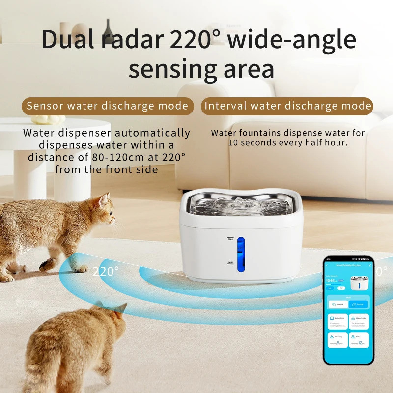 2.5L Tuya WiFi APP Controller 5V USB Sensor Automatic Cat Dog Water Quite Fountain Dog Water Dispenser Transparent Filter Smart Pet Drinking Bowl