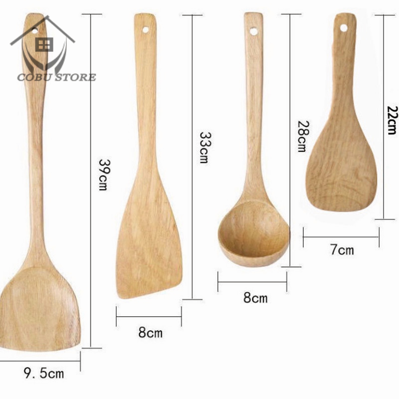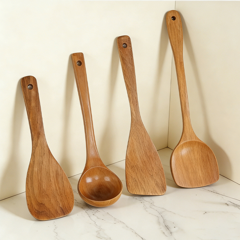 4PCS Non-stick Wooden Spatula Shovel Soup Scoop Rice Fried Wooden Spoon Cookware Set