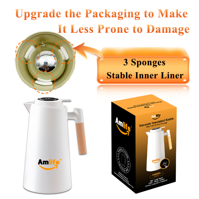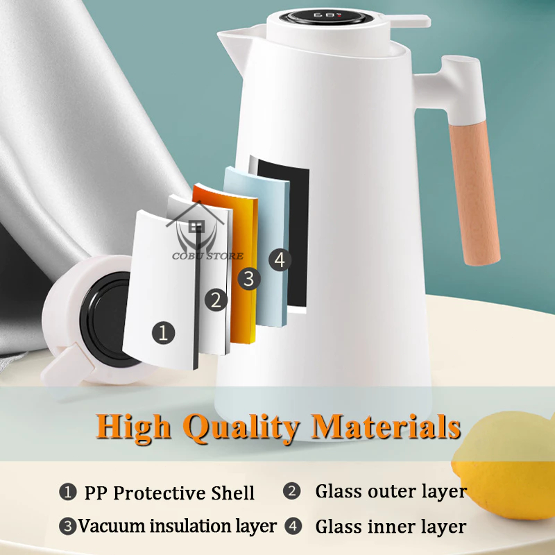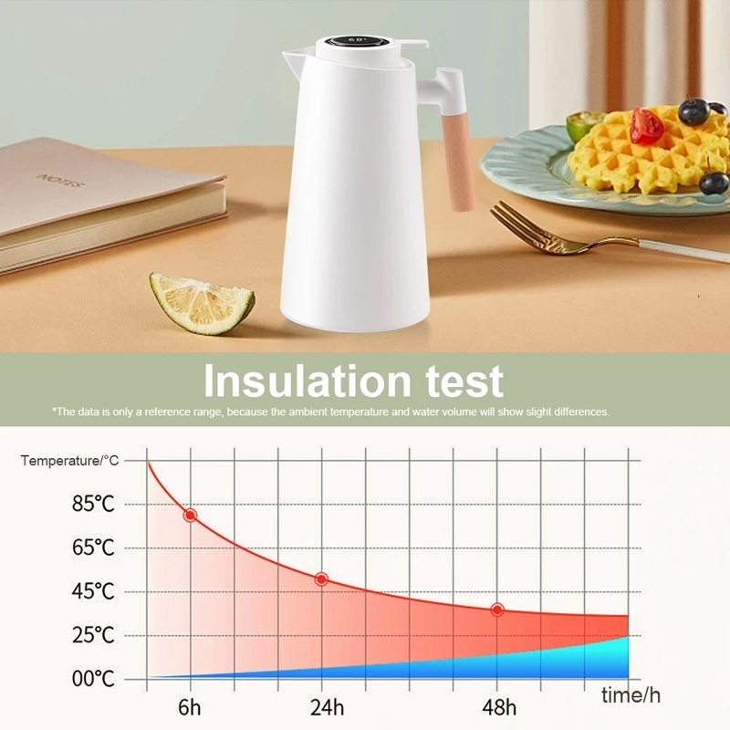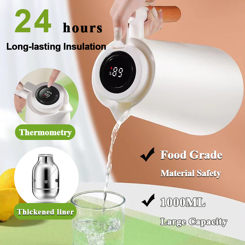 1000ML Intelligent Insulated Kettle, Double-layer Glass Inner Liner, 24-hour Insulation, Food Grade