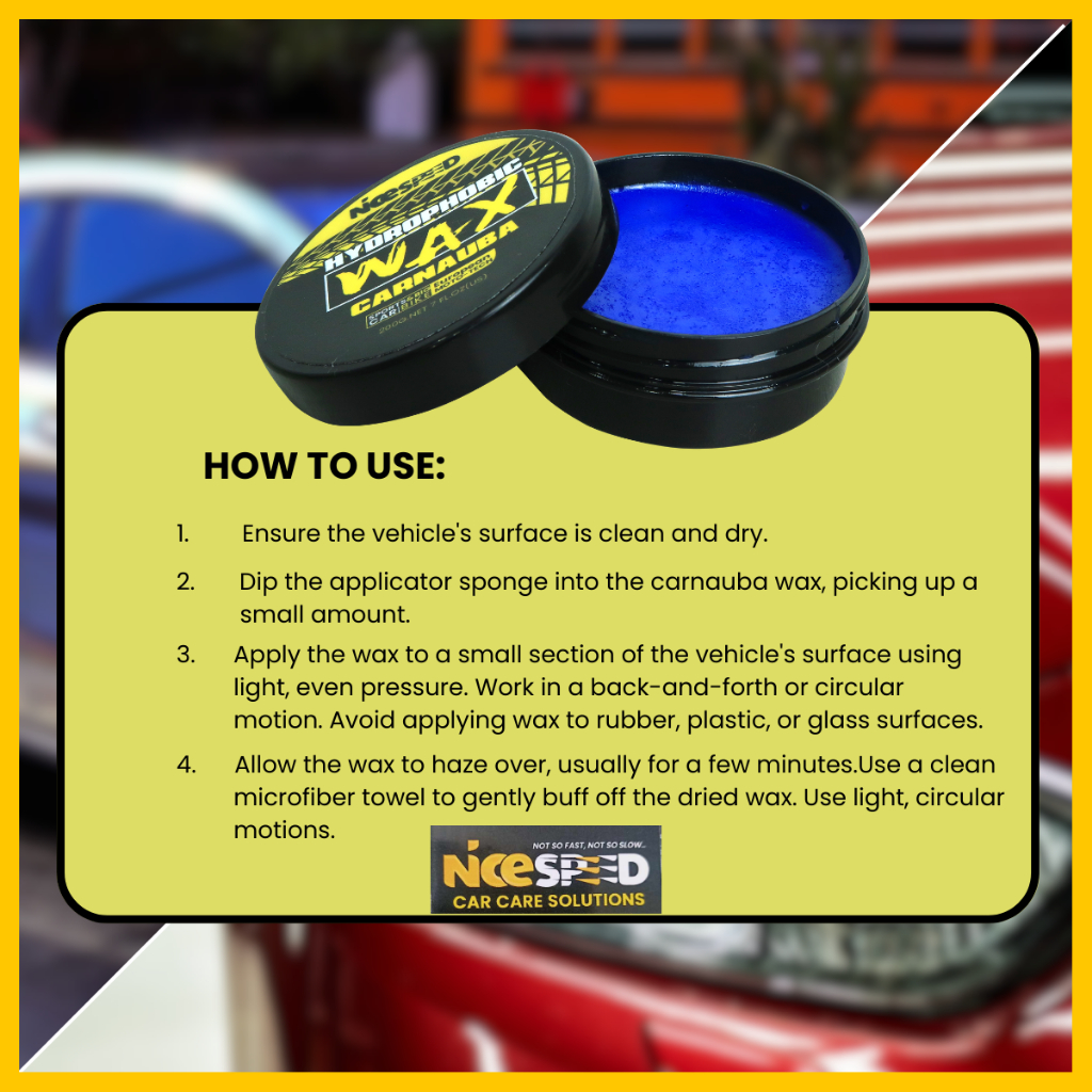 Hydrophobic Waterproof Wax Car Wax Pure Carnauba with FREE Sponge by Nice Speed PH