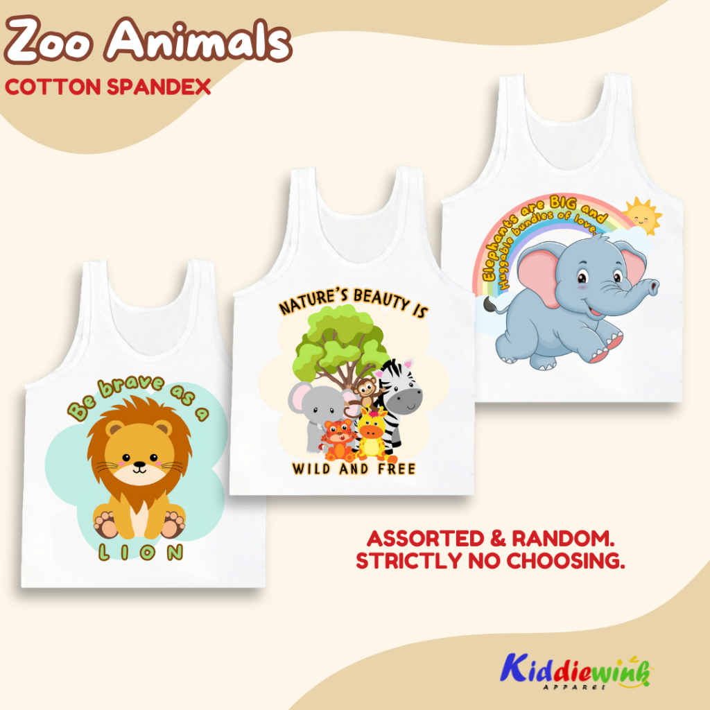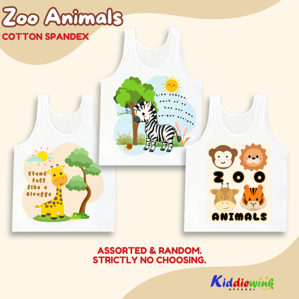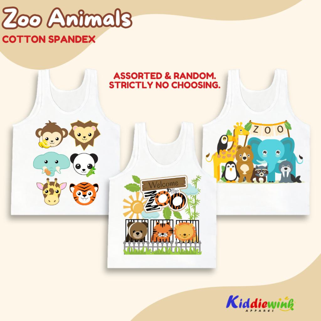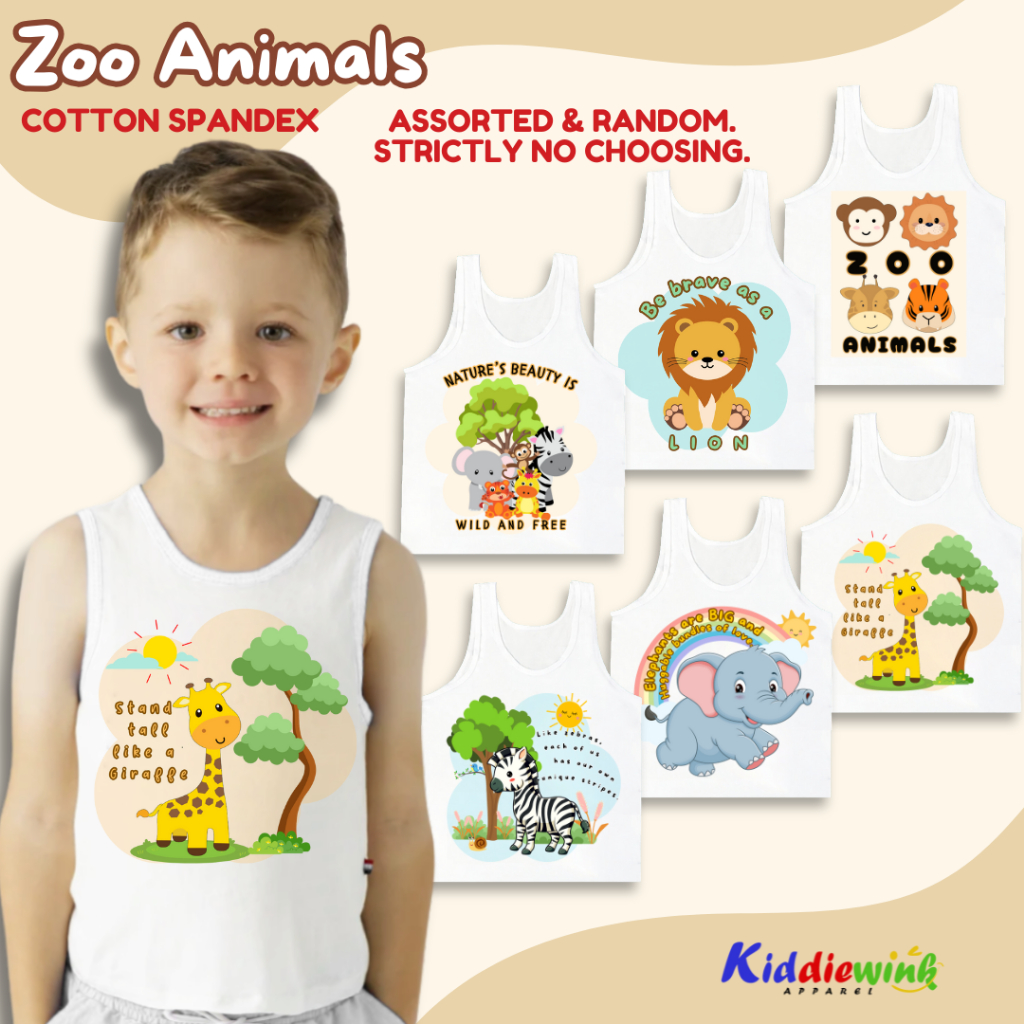 Zoo Animals Kids Sando Top for Boys 0-10 Yrs Old White Cute Sleeveless Clothes Cotton Spandex Tank