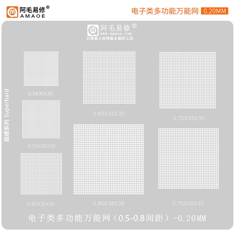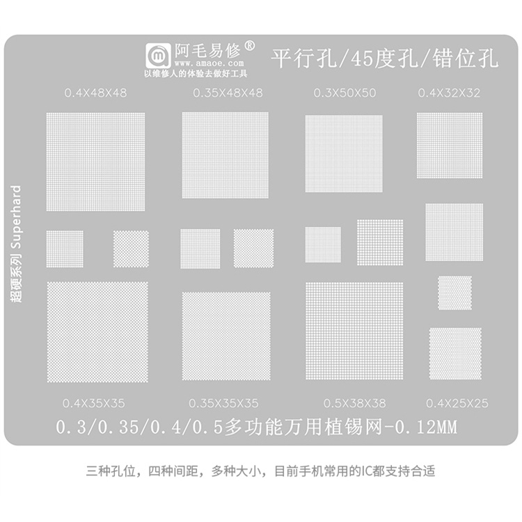 Electronic Universal AMAOE BGA Stencil 0.3/0.35/0.4/0.5 27x27 34x34 33x33 IC Chip Multi-functional Multipurpose Reballing Solder Tin Plant Net Mesh Welding Heat Steel Mesh Rework
