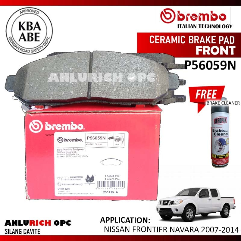 BREMBO BRAKE PADS FRONT for NISSAN FRONTIER NAVARA 2007-2014 W/FREE BRAKE CLEANER PN: P56059N