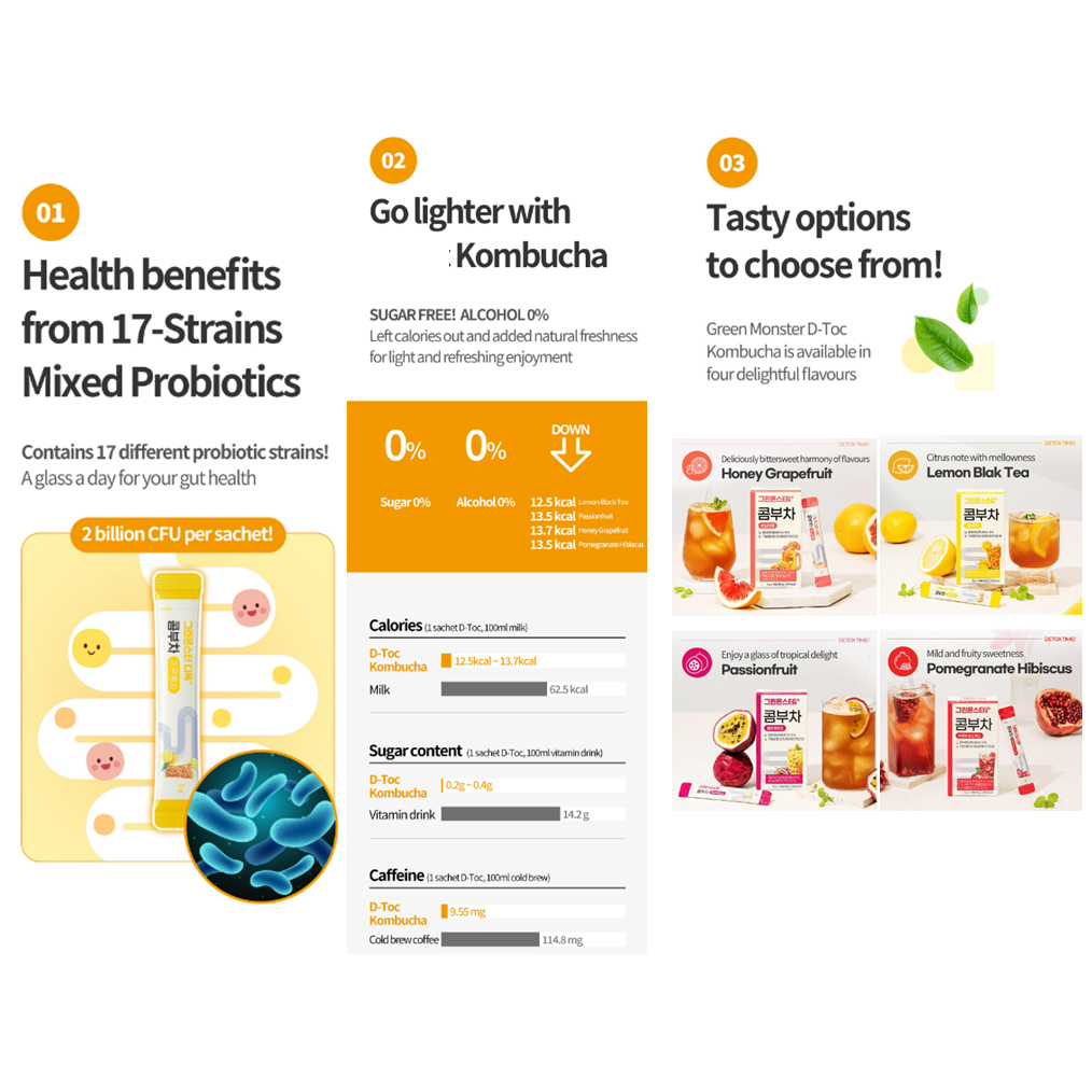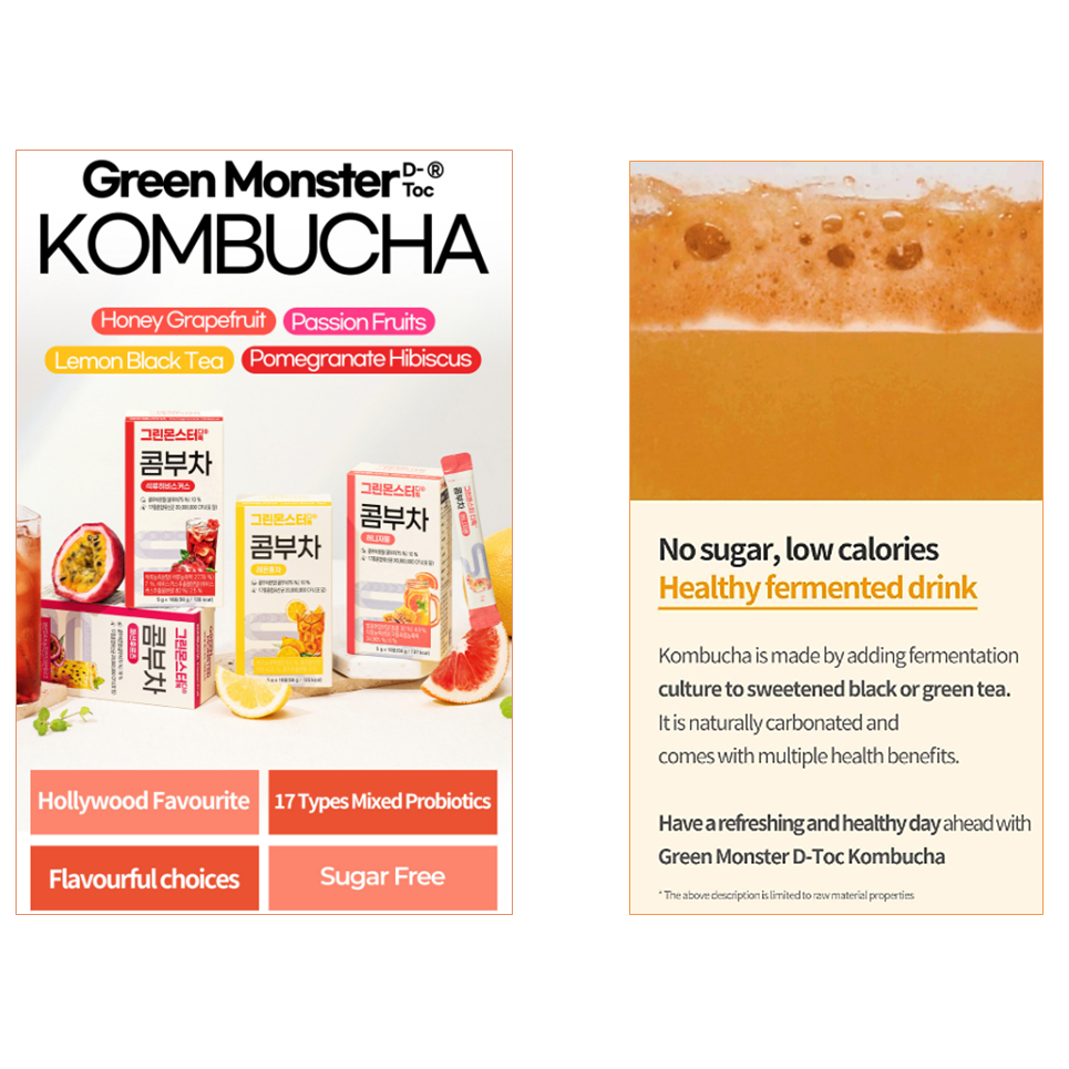 [Green Monster] Kombucha Honey Grapefruit/Pomegranate Hibiscus/Passion Fruits/Lemon Black Tea 10T