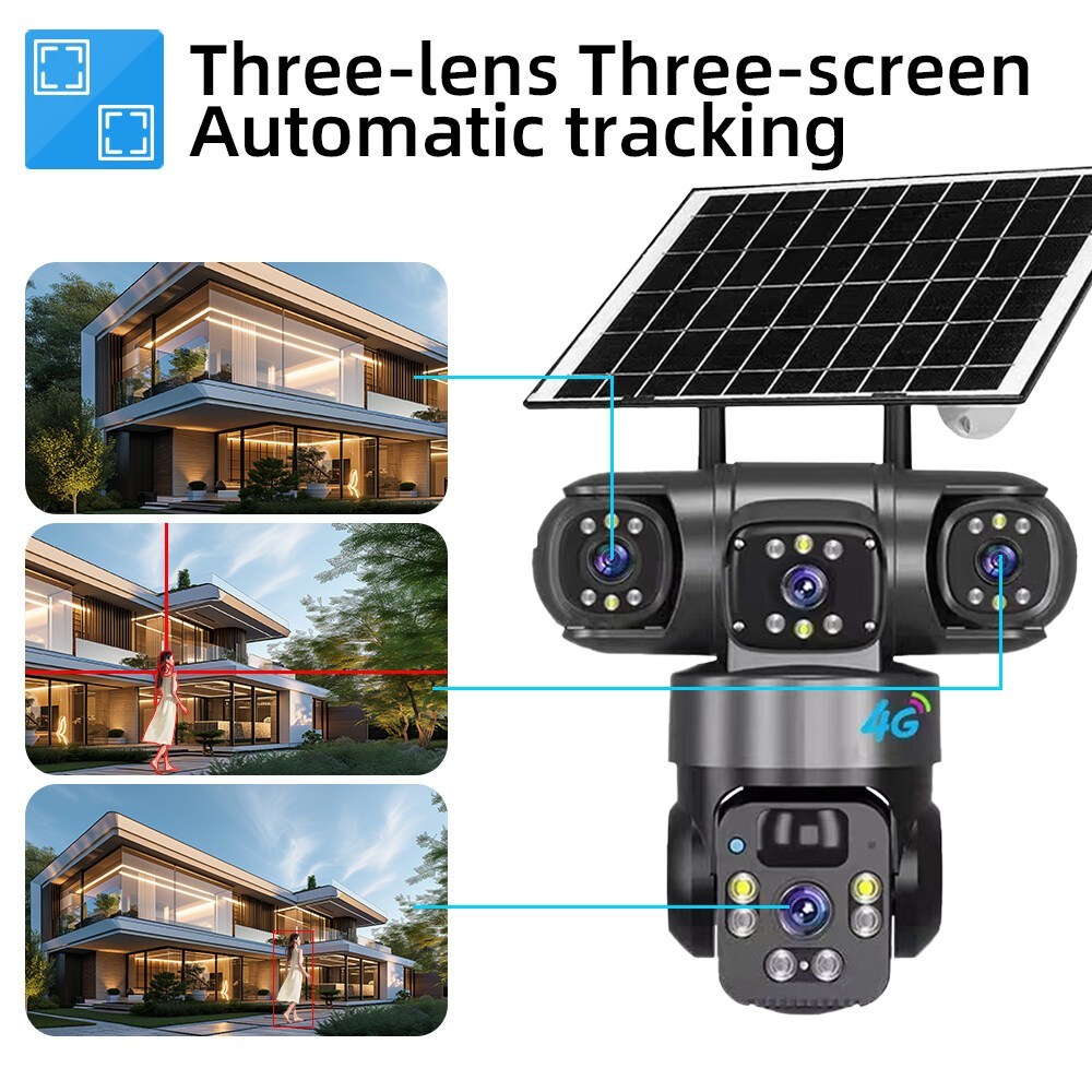V380 PRO Solar CCTV Camera Three Lens Farm Specific Outdoor Waterproof Wireless WIFI Remote Monitor