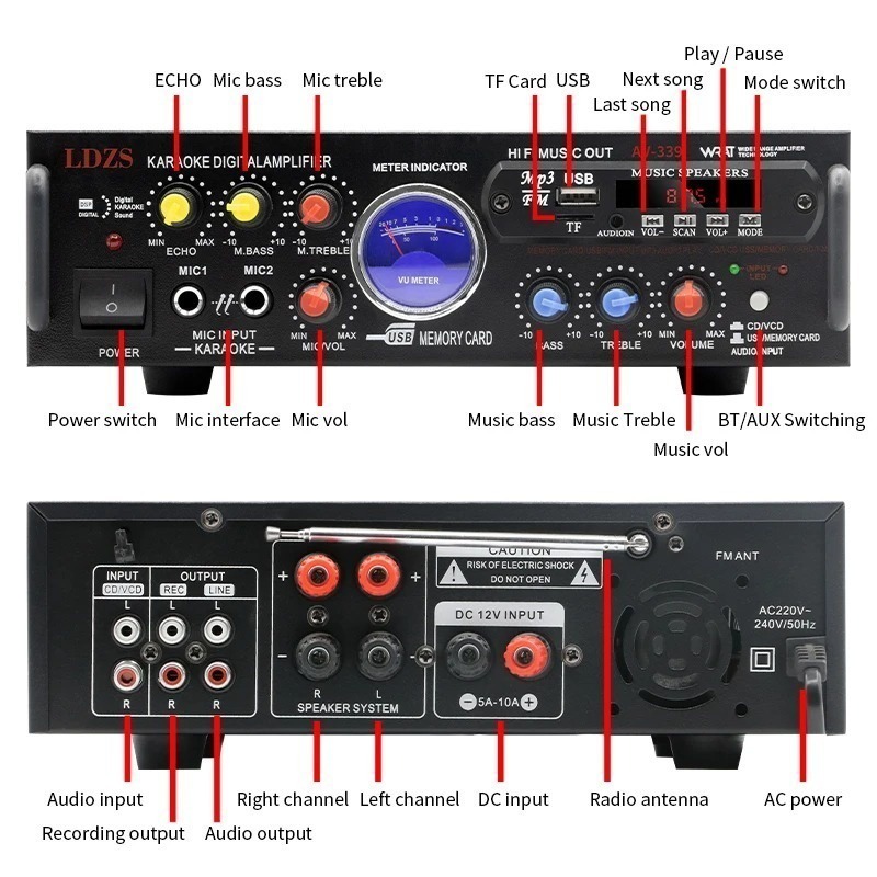 GSE 2000W AV-339 2-Channel Hi Fi Stereo Karaoke Amplifier Yamaha AV-339 with USB/SD Input/Tested