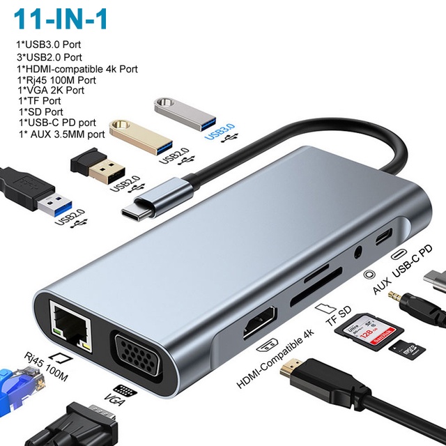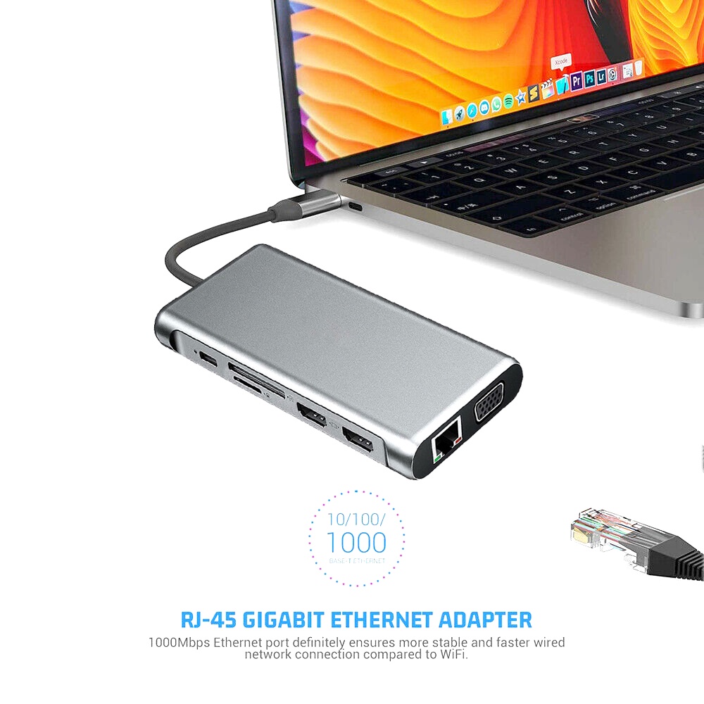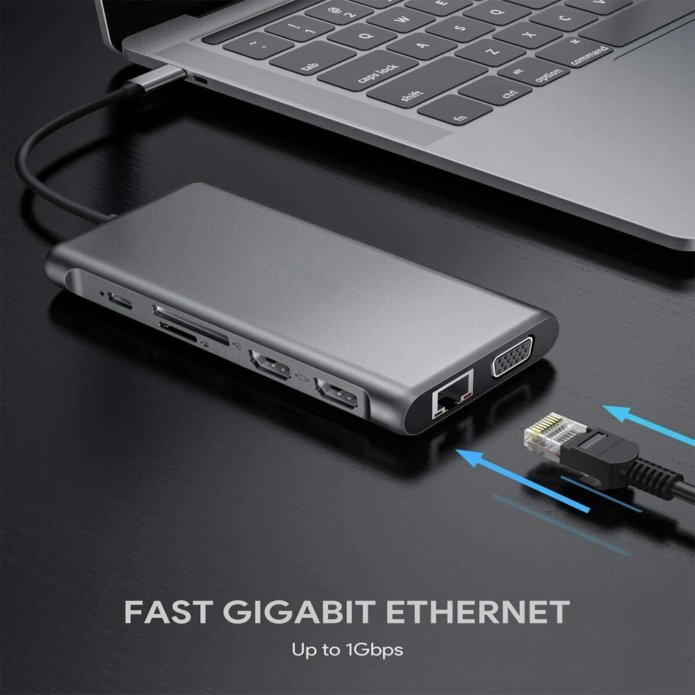 12 in 1 USB Type C Hub Type-C To 2 HDMI 4K VGA Adapter RJ45 Lan Ethernet SD TF PD USB-C 3.0 3.5mm Audio/Mic for MacBook Pro OTG