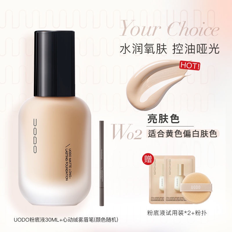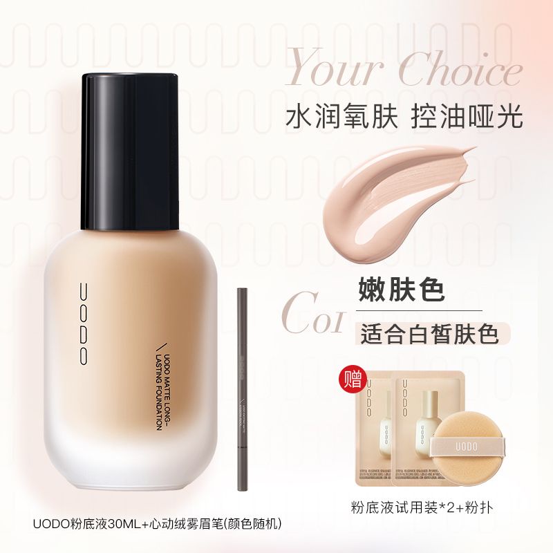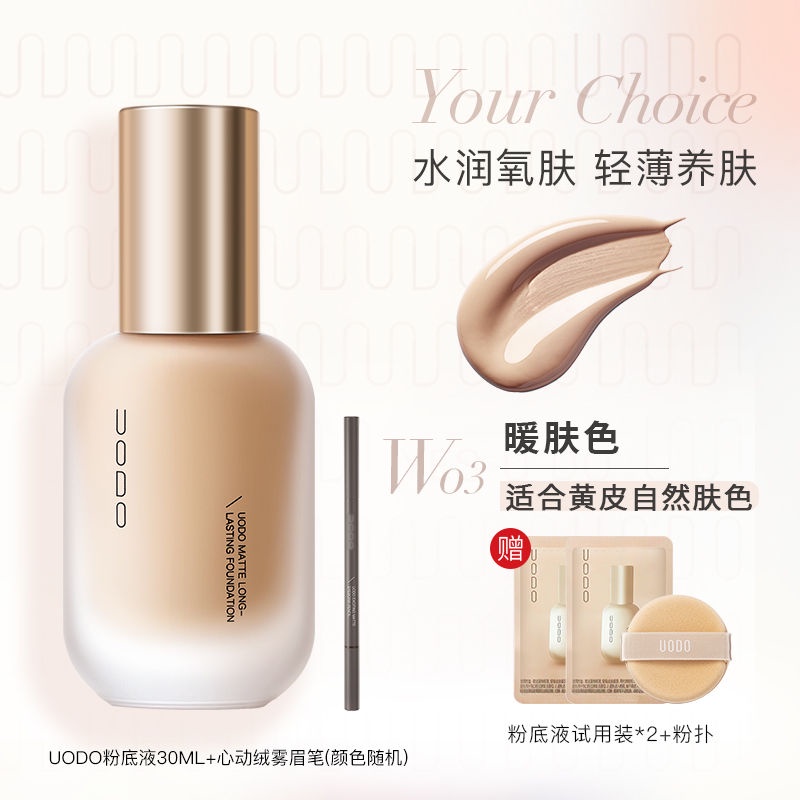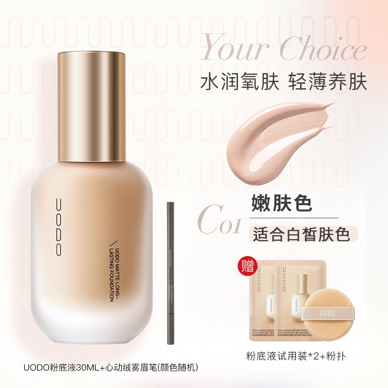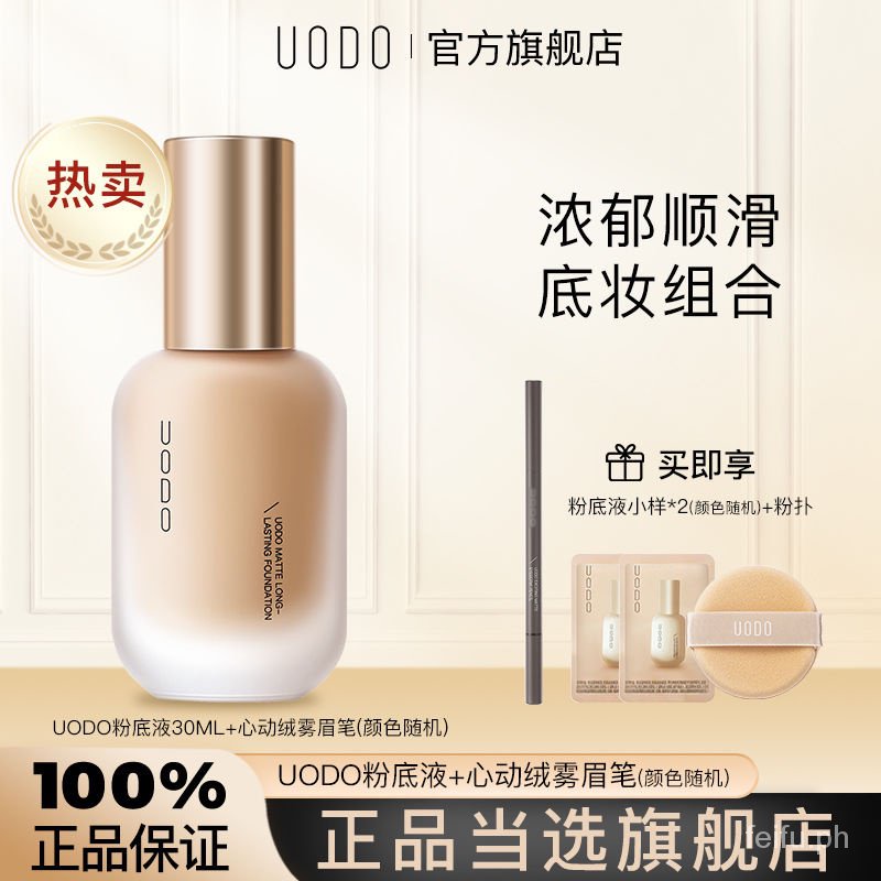 [In stock] douyin makeup UODO Foundation liquid lasting not easy to remove makeup concealer Moisturizing not stuck dry powder oil skin bb plus double-headed eyebrow pencil suit X1BL