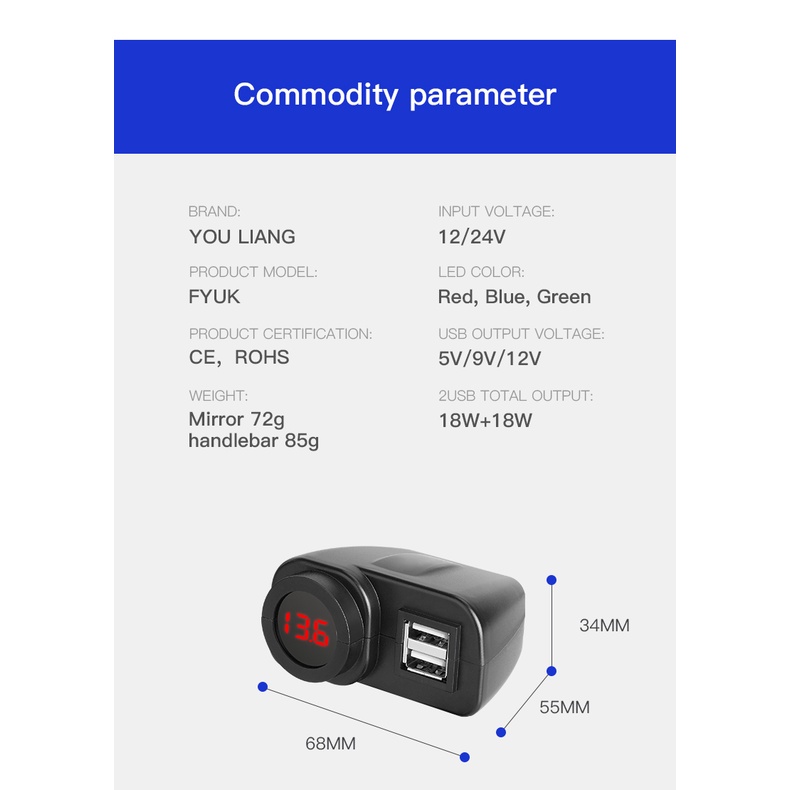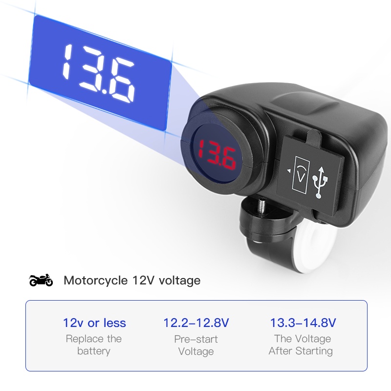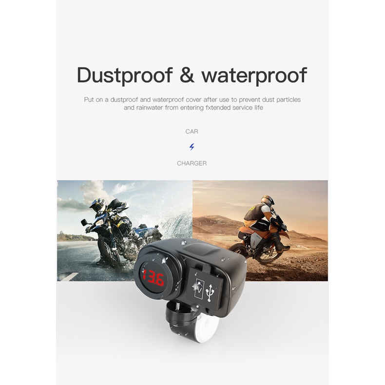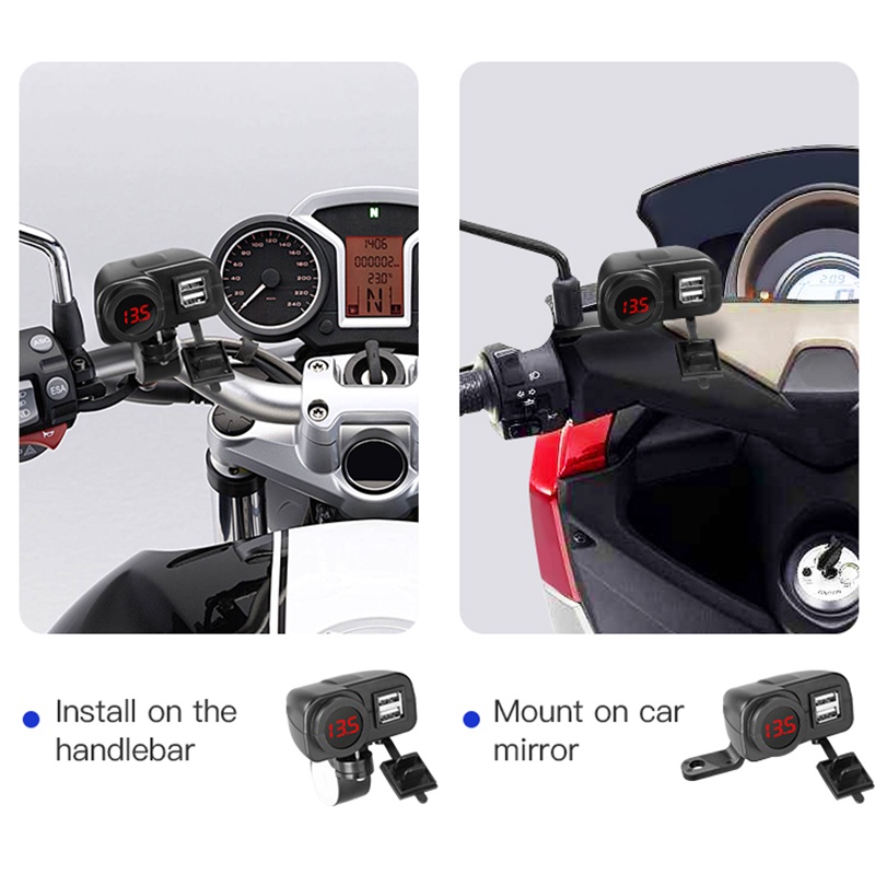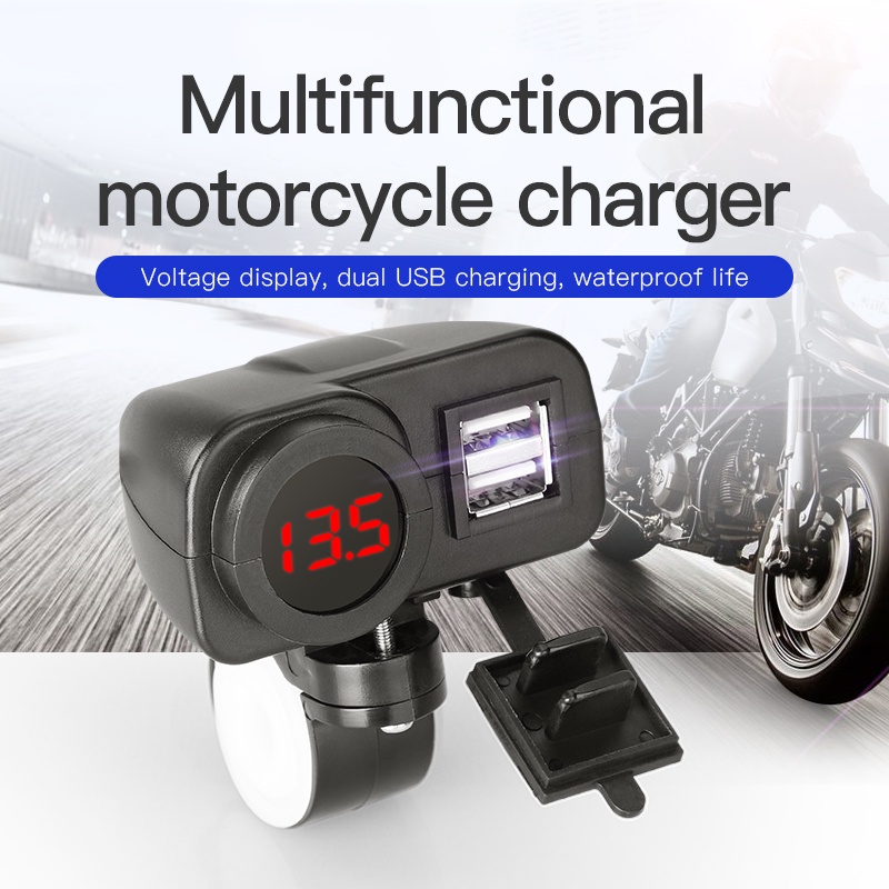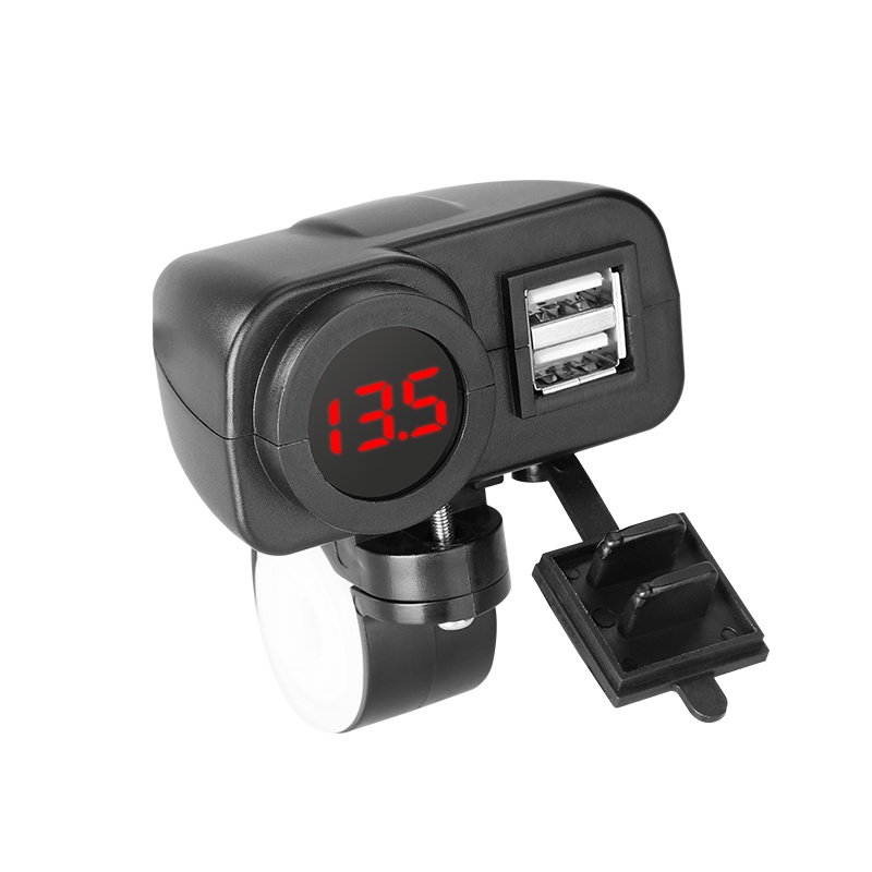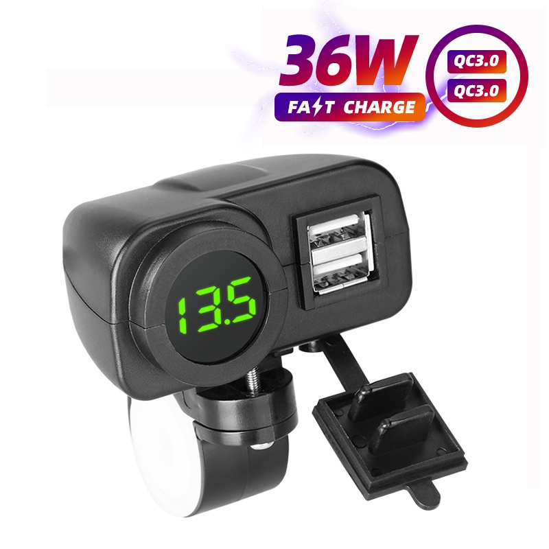 Motorcycle Waterproof Usb Mobile Charger 2 Port Usb Panel Mount Socket Voltmeter Fast 12V 5V Charger QC3.0 Digital Display