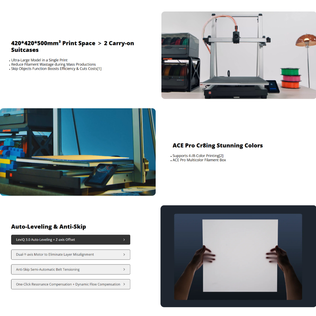 Anycubic Kobra 3 Max Combo large format FDM multi color 3D printer with built-in filament dryer