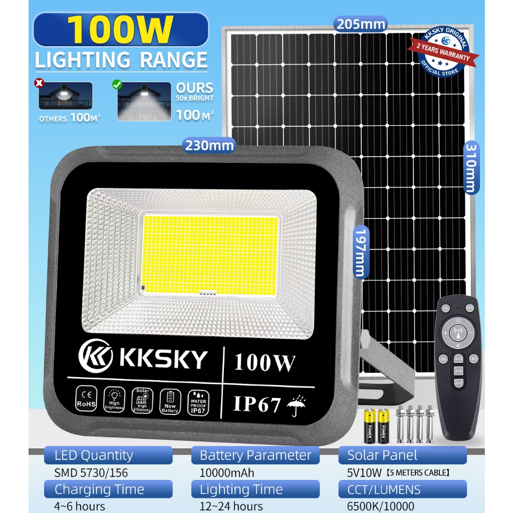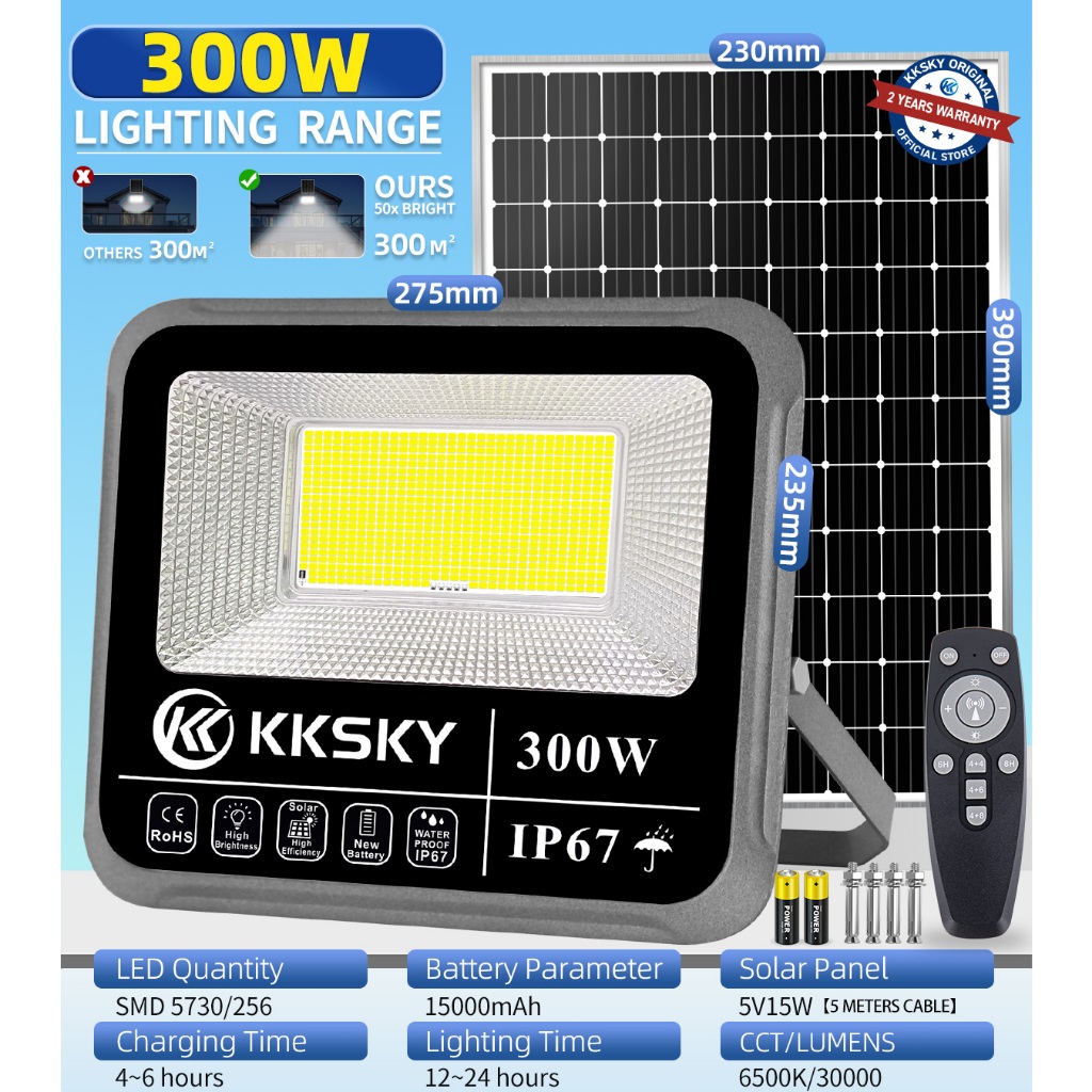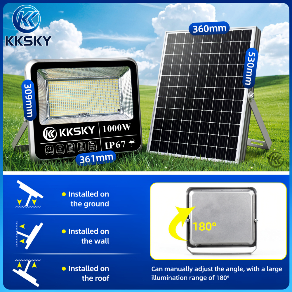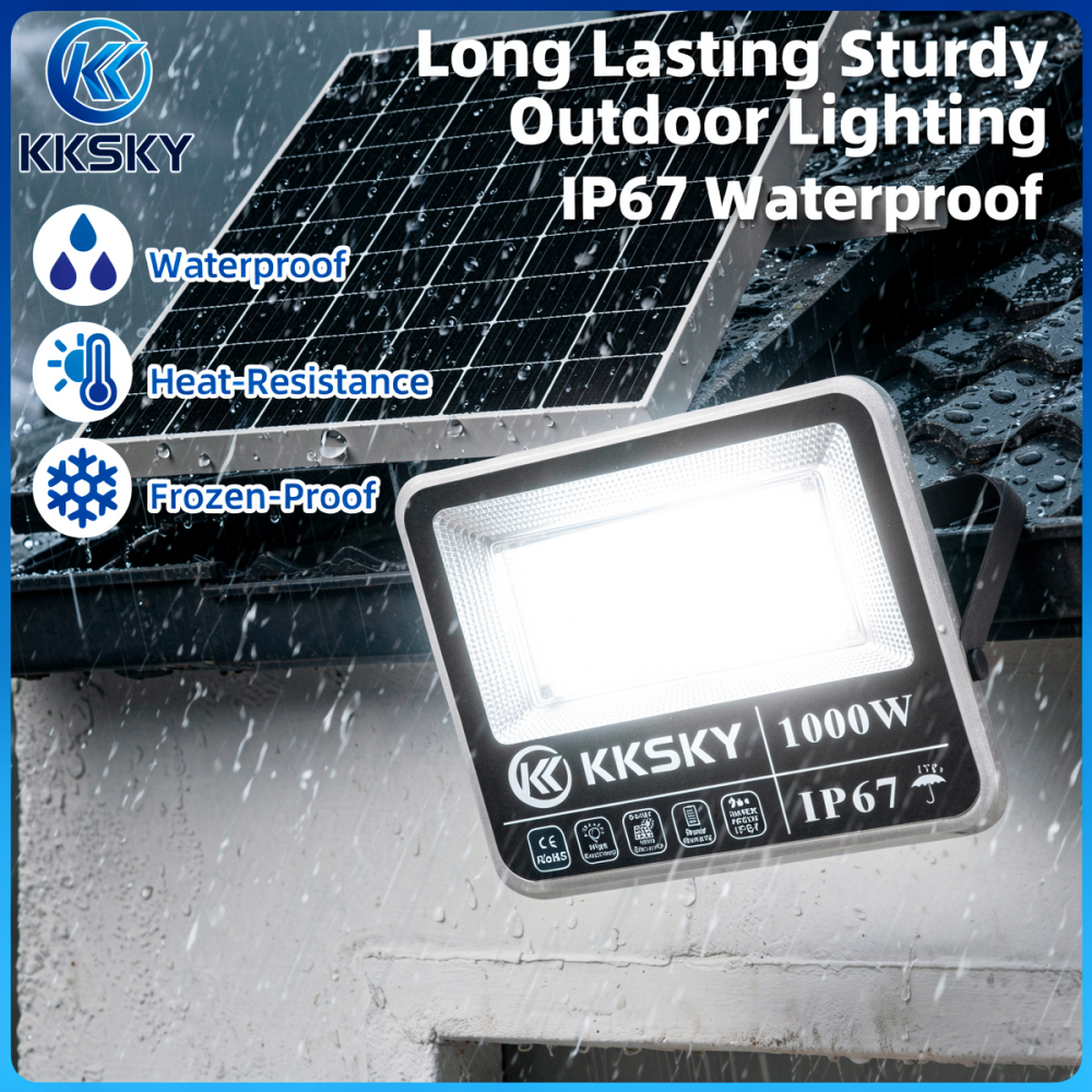 KKSKY Solar Light Outdoor Waterproof IP67 Heavy Duty Street Flood LED Lighting with Panel Remote