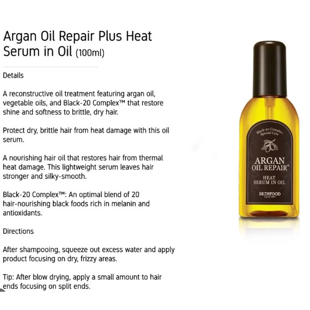 [Skinfood] Argan Oil Repair Plus Heat Serum in Oil (NEW PACKAGING)