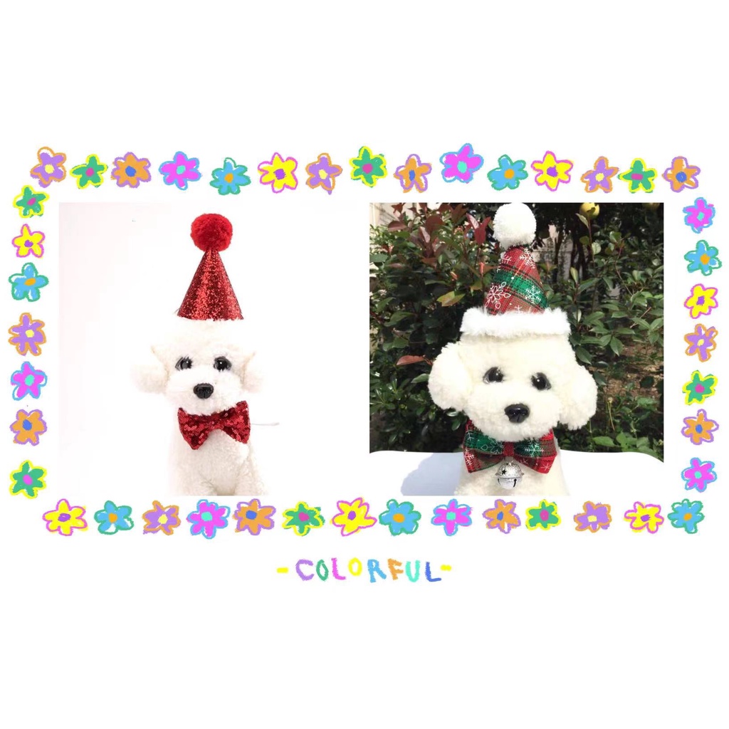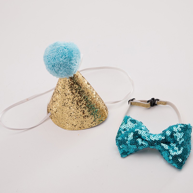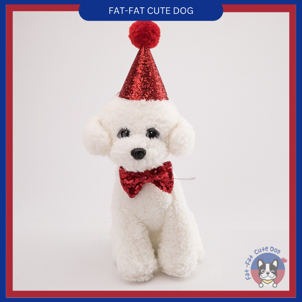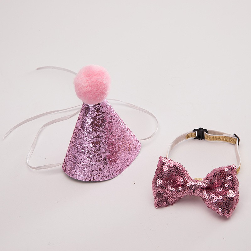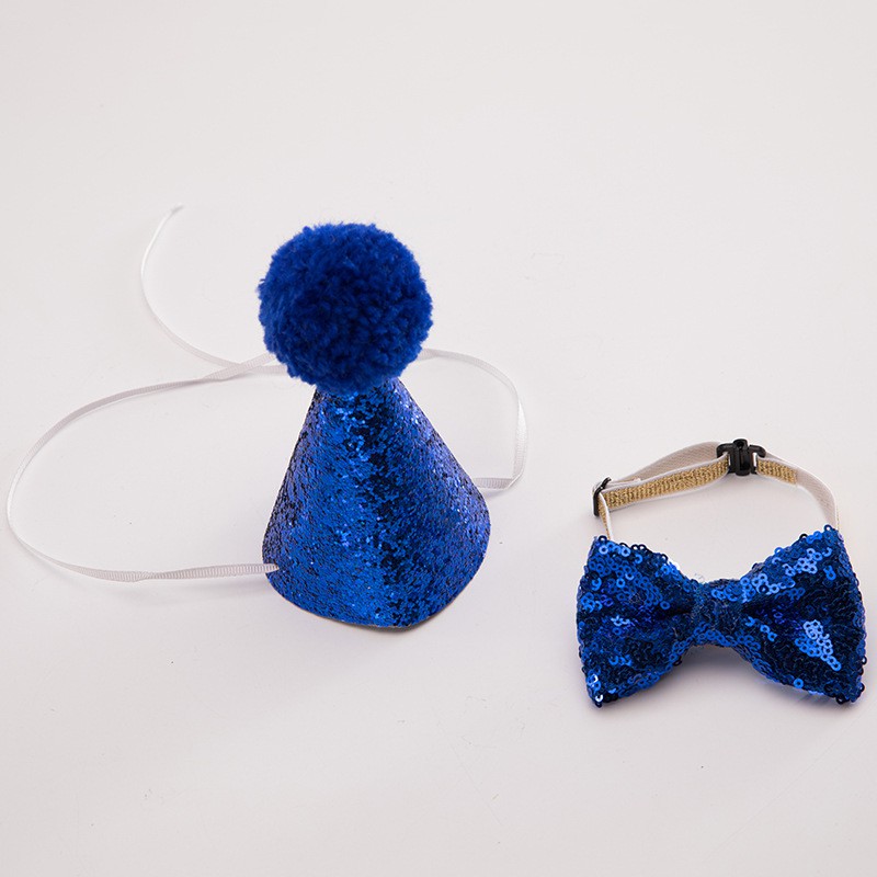 【Fat Fat Cute Dog】Dog Party Accessory Birthday Hat Sequins Hat and Bowtie Set