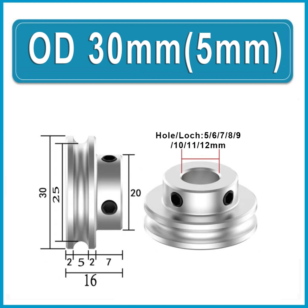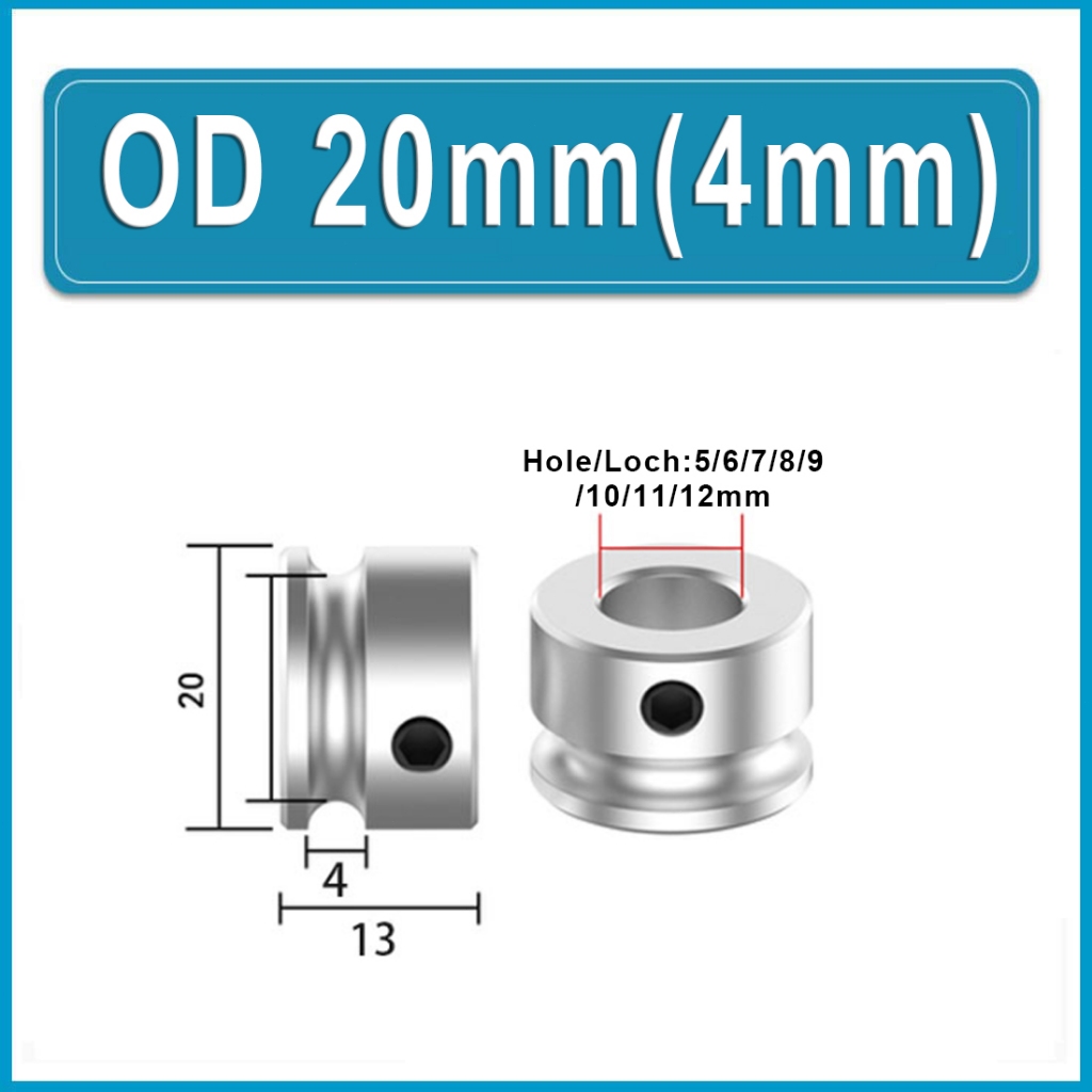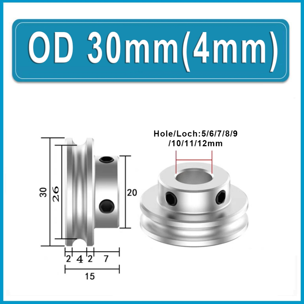 U-shaped Round Steel Pulley, Circular Groove Pulley Alu Single Grooved Pulley PU Round Belt Pulleys OD 20mm 30mm 40mm Hole 6~15mm For Motor