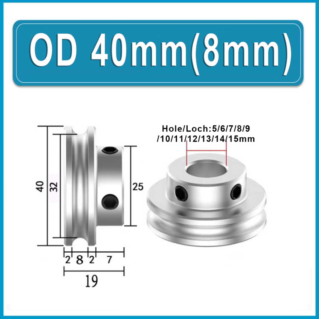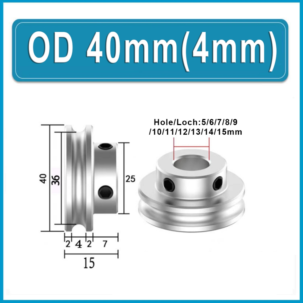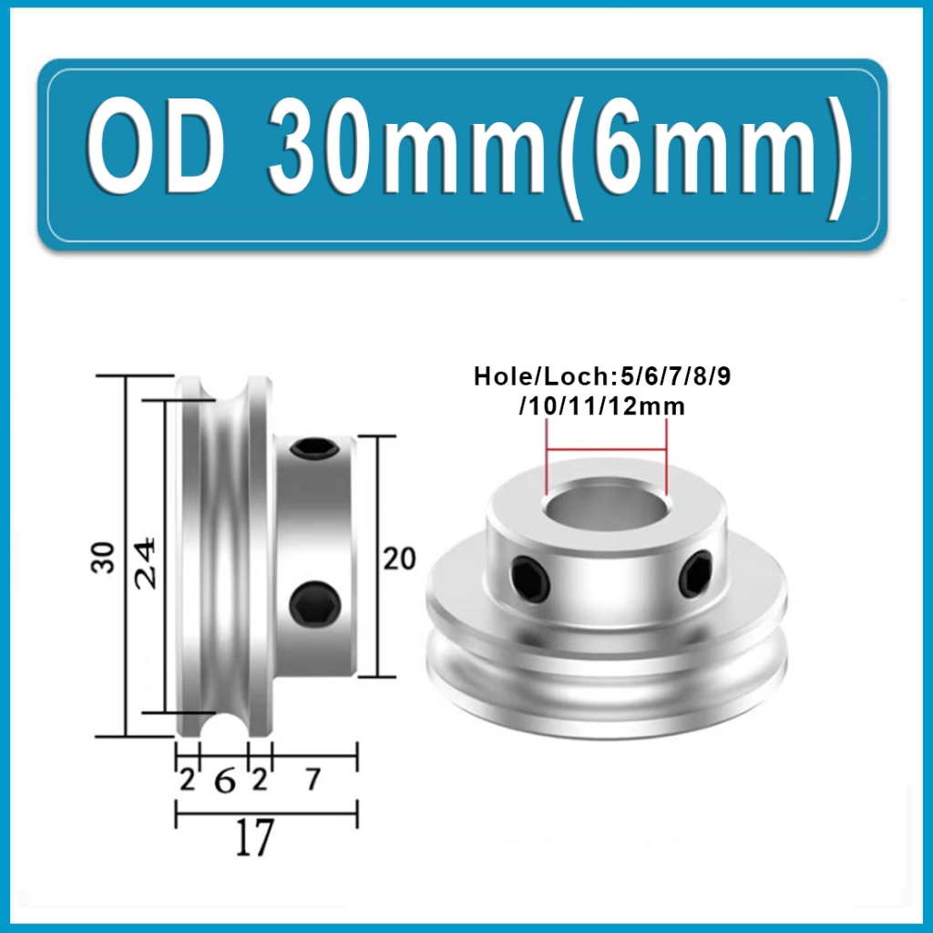 U-shaped Round Steel Pulley, Circular Groove Pulley Alu Single Grooved Pulley PU Round Belt Pulleys OD 20mm 30mm 40mm Hole 6~15mm For Motor