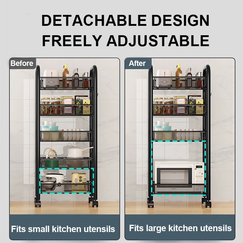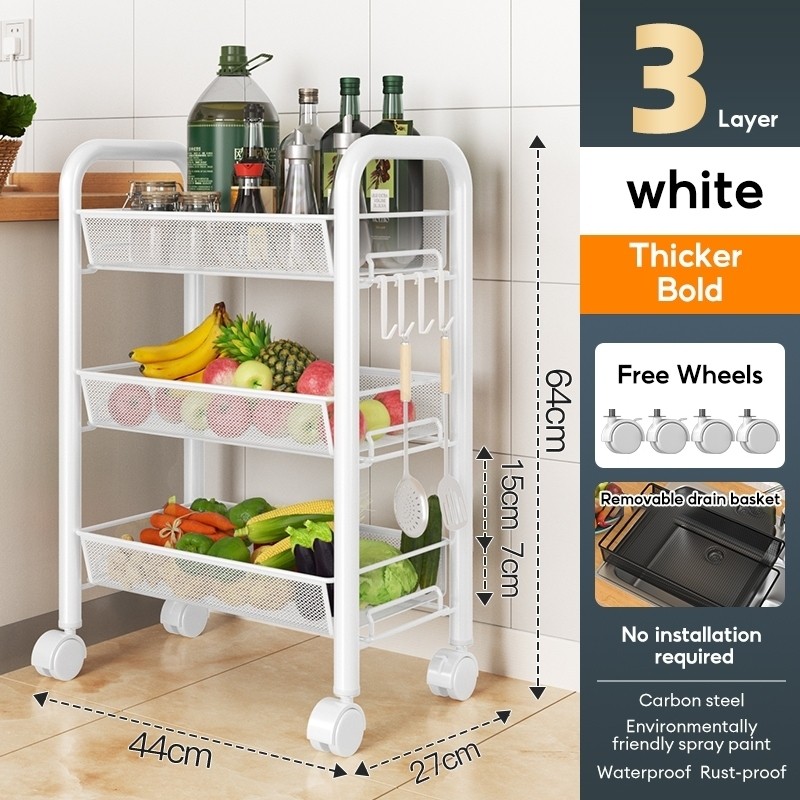 3/4/5 Layer Trolley Cart Organizer Vegetable Rack Metal Multi Layer Kitchen Storage Rack