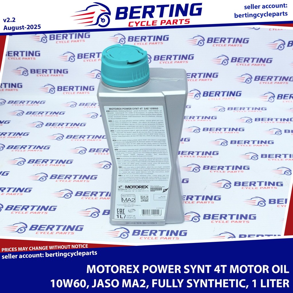 MOTOREX POWER SYNT 4T FULLY SYNTHETIC OIL 1 LITER 10W50 10W60 JASO MA2 Genuine