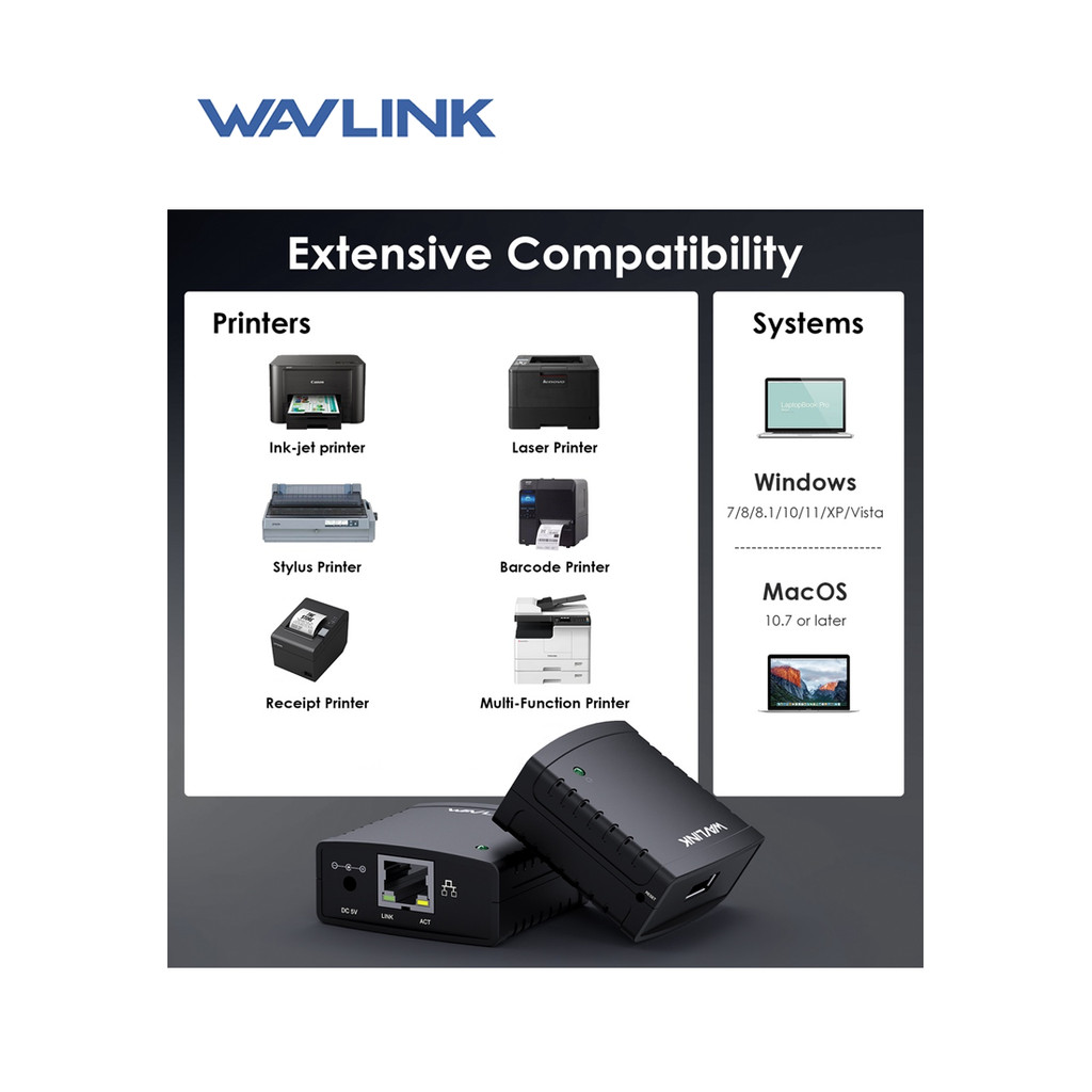 LatestGadget Wavlink Network Print Server WLNU78M41 - Black